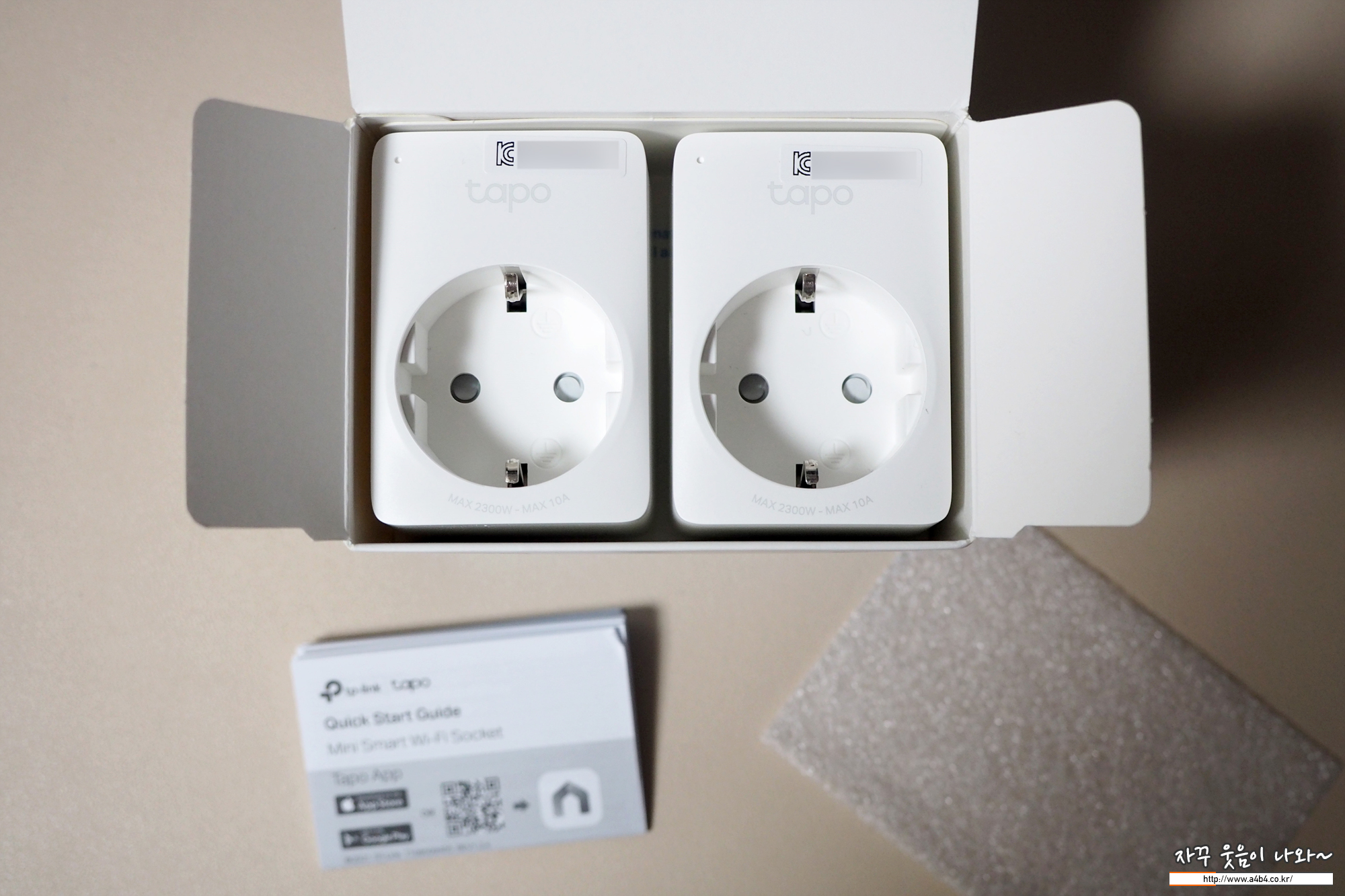 얇은 박스안에 2개의 스마트플러그와 1도 필요없는 설명서가 포함되어 있습니다. 그것도 한글은 지원하지 않는...