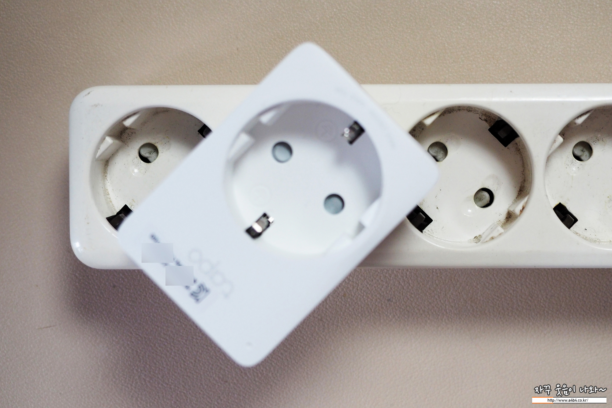 멀티탭 기준으로 요렇게 생긴 얇은 타입의 무접지 플러그는 사용이 가능하지만, 접지형 플러그나 스마트폰 충전기는 바로 옆에 사용은 어렵습니다.