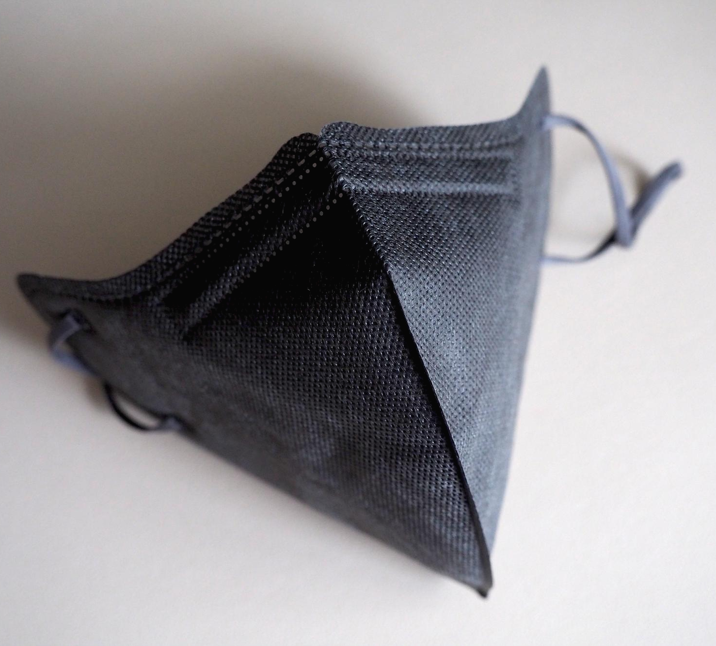 성상 1) 검정색: 마스크에 글자등 새김이 있는 검정색의 2단 세로접이식 본체에 코편이 있고, 양 측면에 검정색의 끈이 있는 부직포 마스크 2) 회색: 마스크에 글자등 새김이 있는 회색의 2단 세로접이식 본체에 코편이 있고, 양 측면에 회색의 끈이 있는 부직포 마스크
