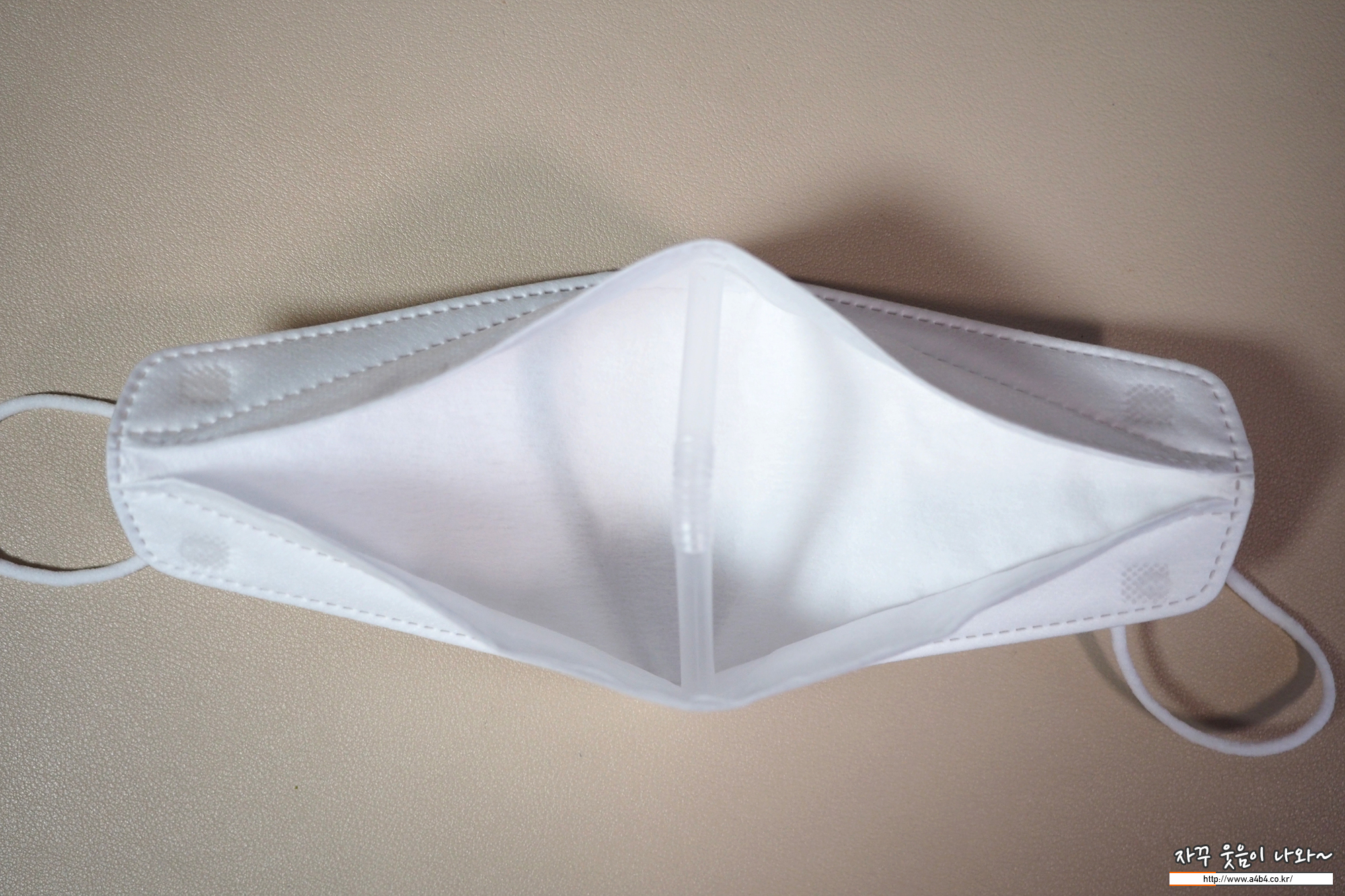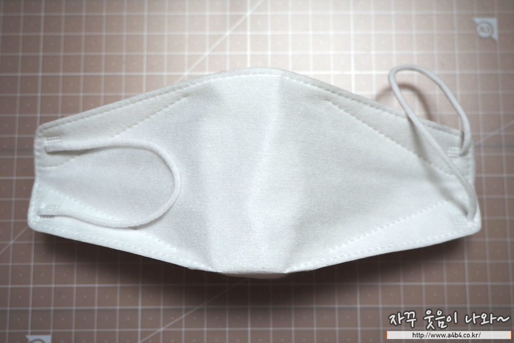 마스크 디자인은 일반적인 가로 3단접이식 3D타입 제품으로 일반적인 디자인을 보입니다. 다만 타사 제품에 비해 가로 길이가 약간 긴 모양을 보입니다.