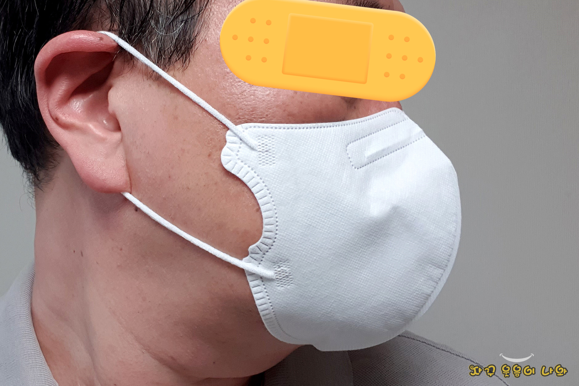 아쉬운 부분은 둥근 이어밴드와 마스크가 얇아서 깊은 숨을 쉬면 부직포가 입술과 접촉하는 문제도 있습니다.