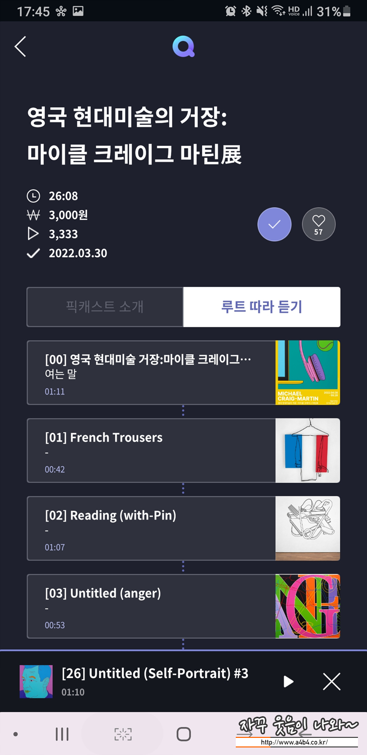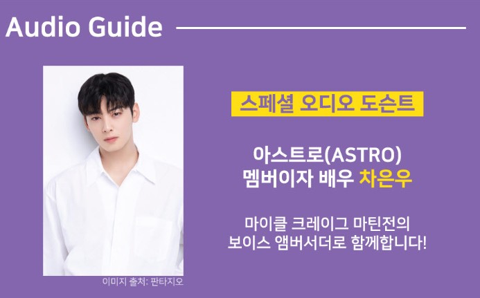 또한 아스트로의 맴버 차은우씨거 설명하는 오디오 도슨트는 3,000원에 다운로드 및 이용이 가능합니다.