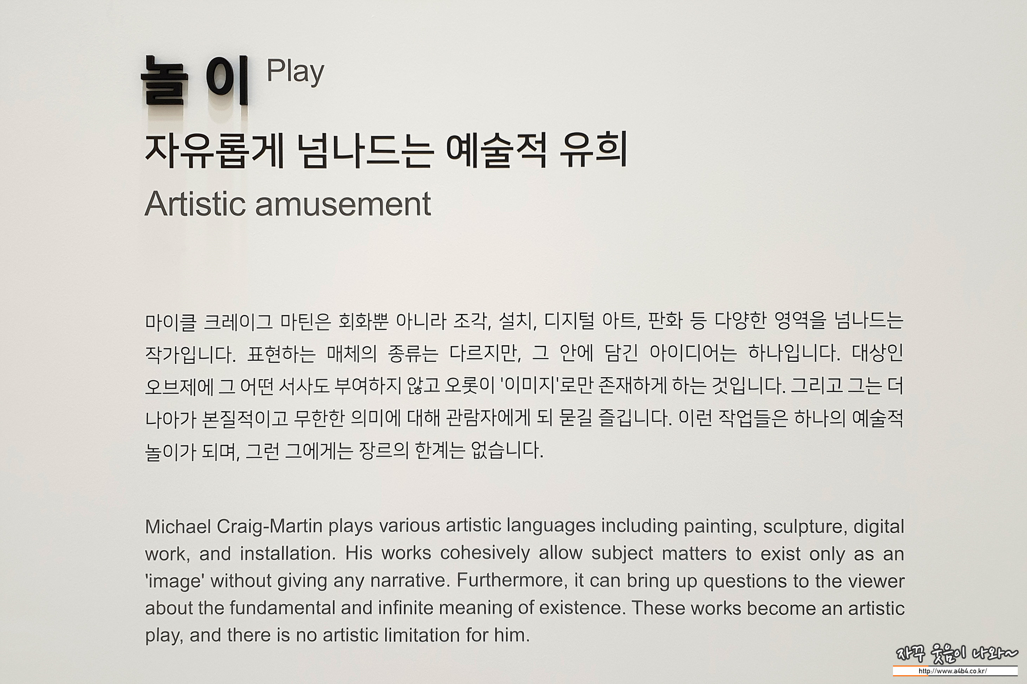 이번 전시회에서는 그의 작품은 물론 작가인 '마이클 크레이그 마틴'과 오디오 도슨트를 담당한 가수이자 영화배우인 아스트로의 '차은우'씨도 만났네요.