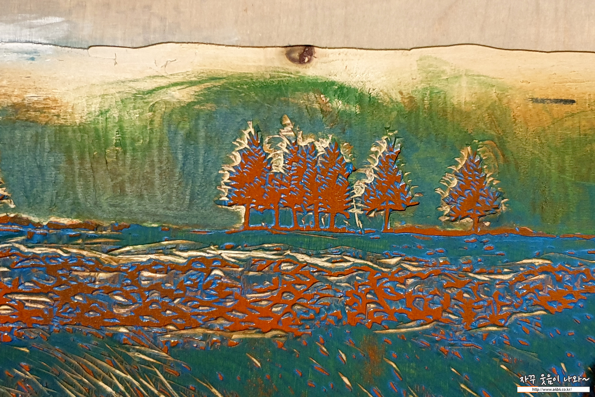 유성목판과 채묵목판의 차이... 암튼 두 작품 모두 상당히 강렬한 컬러와 느낌을 보여주는 작품입니다.