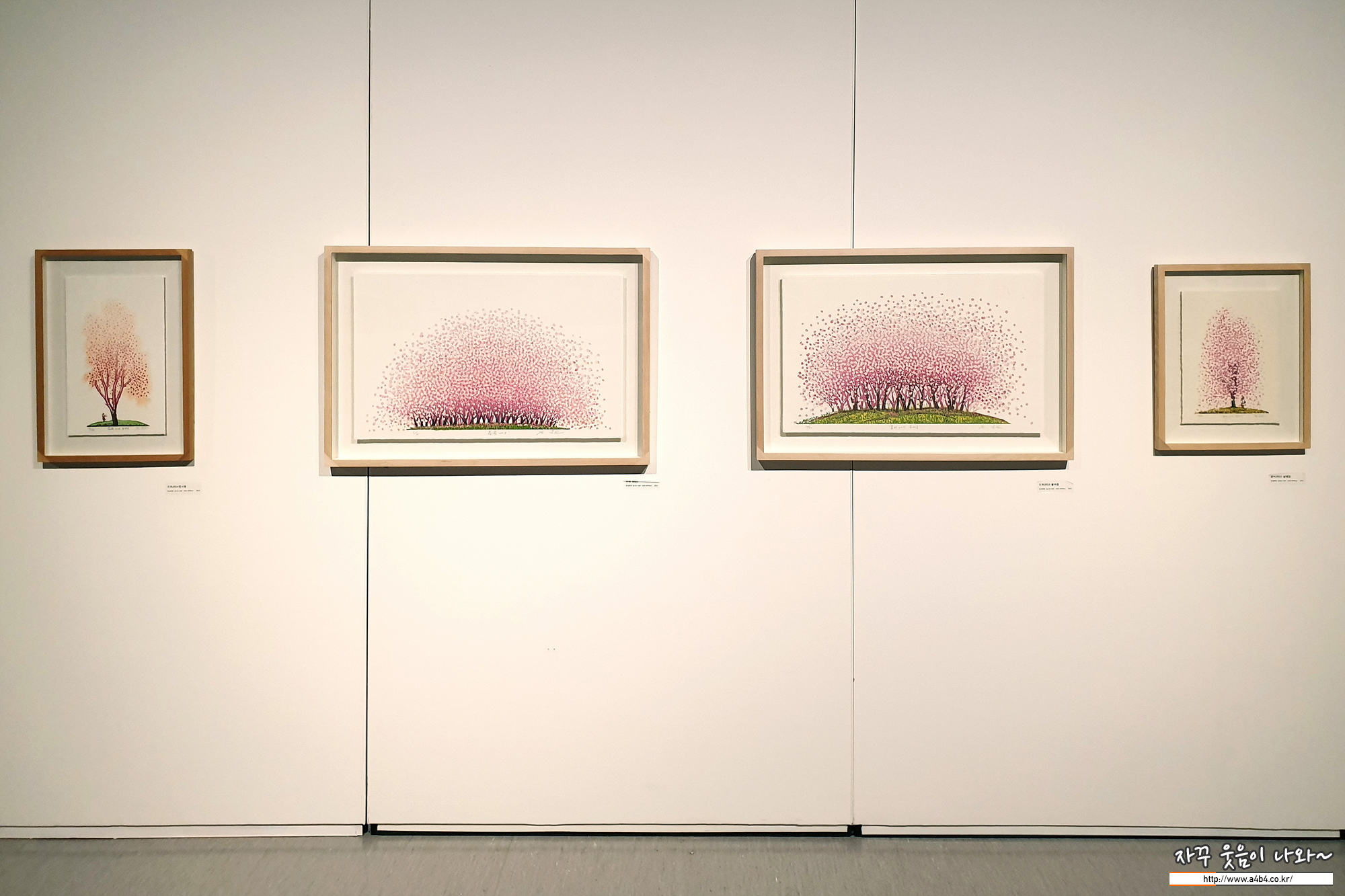 앞에서 본 작품들과는 조금 다른 느낌을 주는 유성목판 작품인 '꽃비' 연작들...