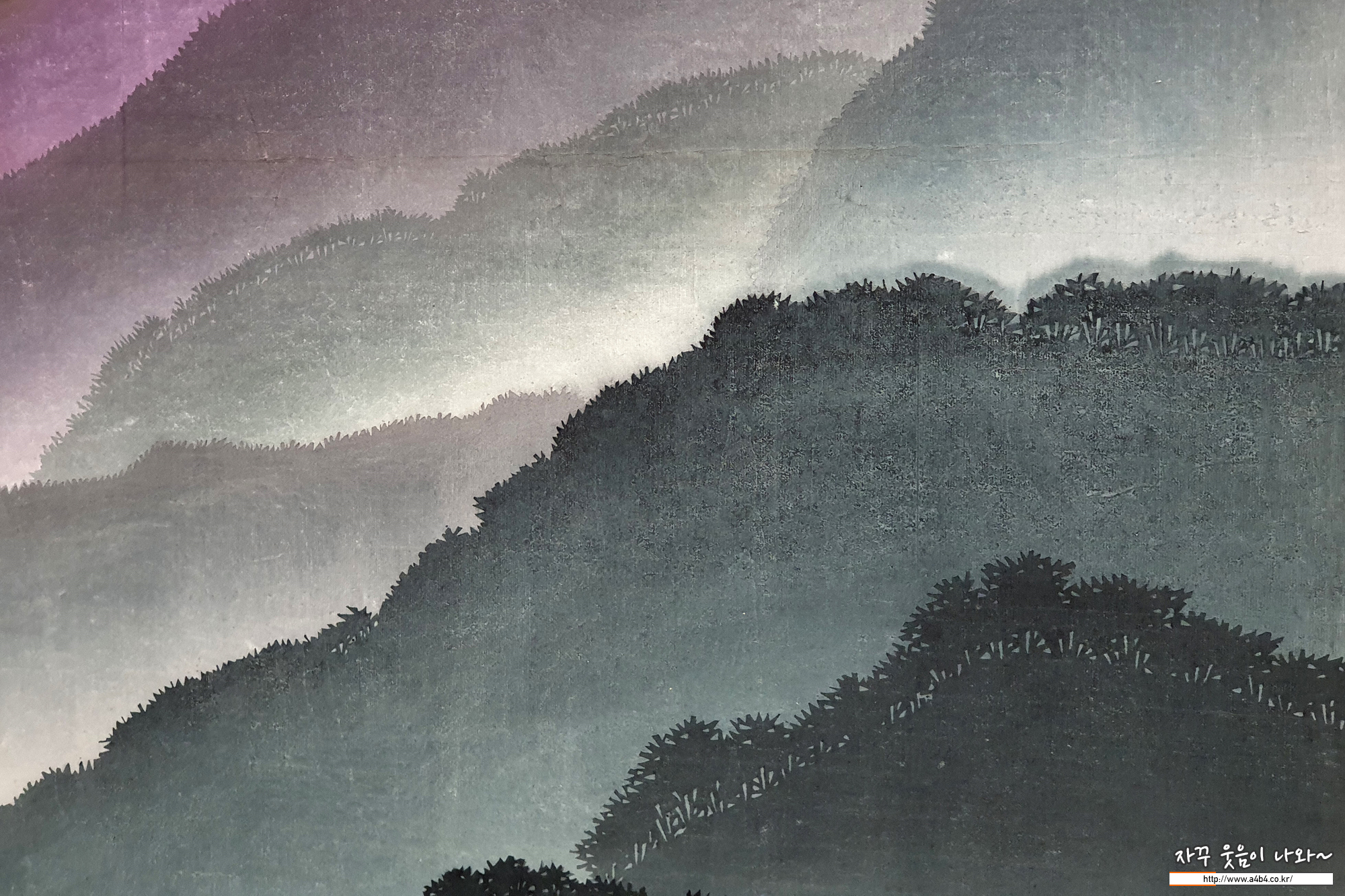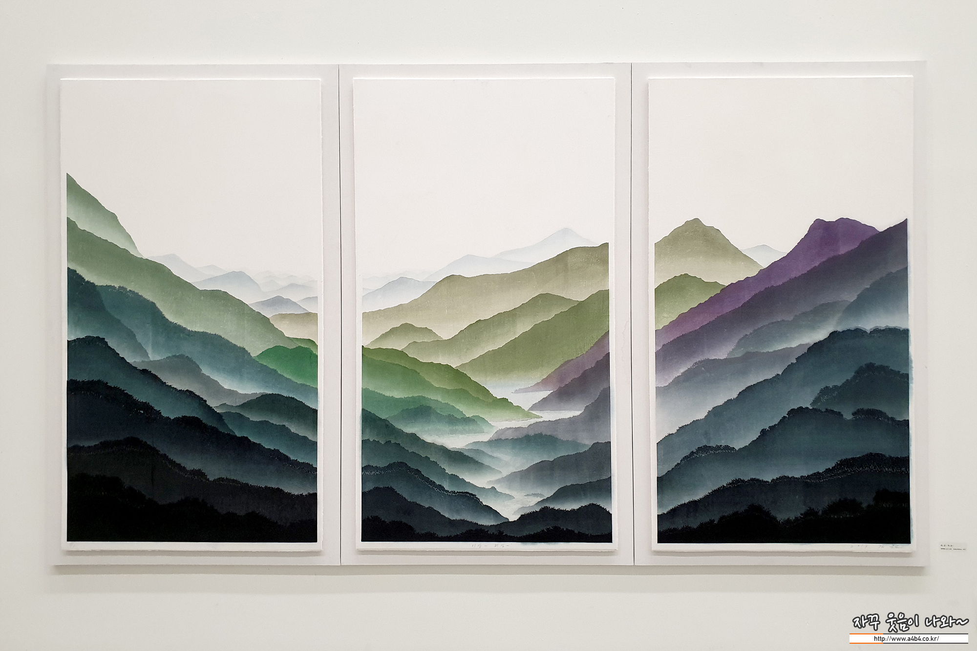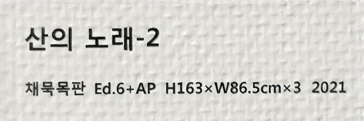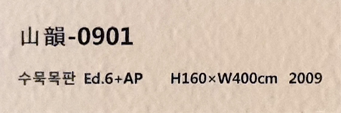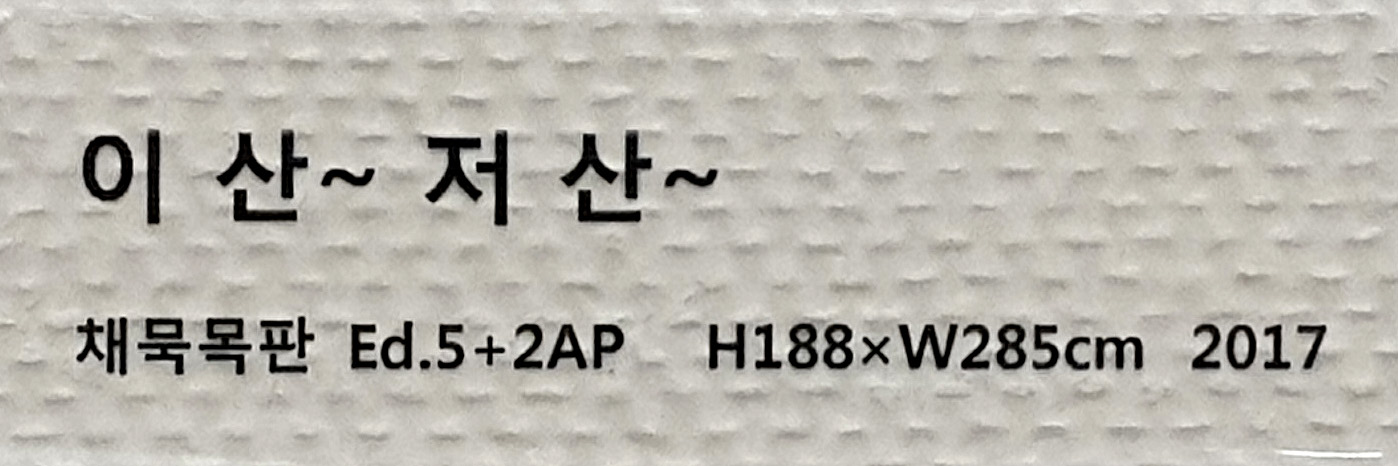 이번 전시회 대표 작품 중 하나인 '이 산 저 산' (채묵목판 W285cmxH188cm 2017)