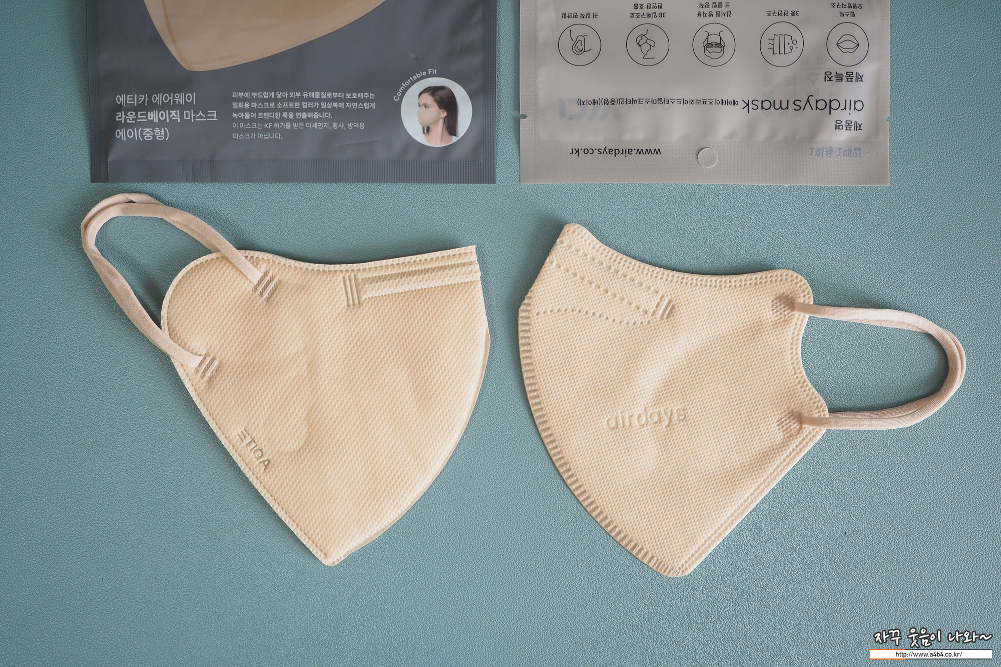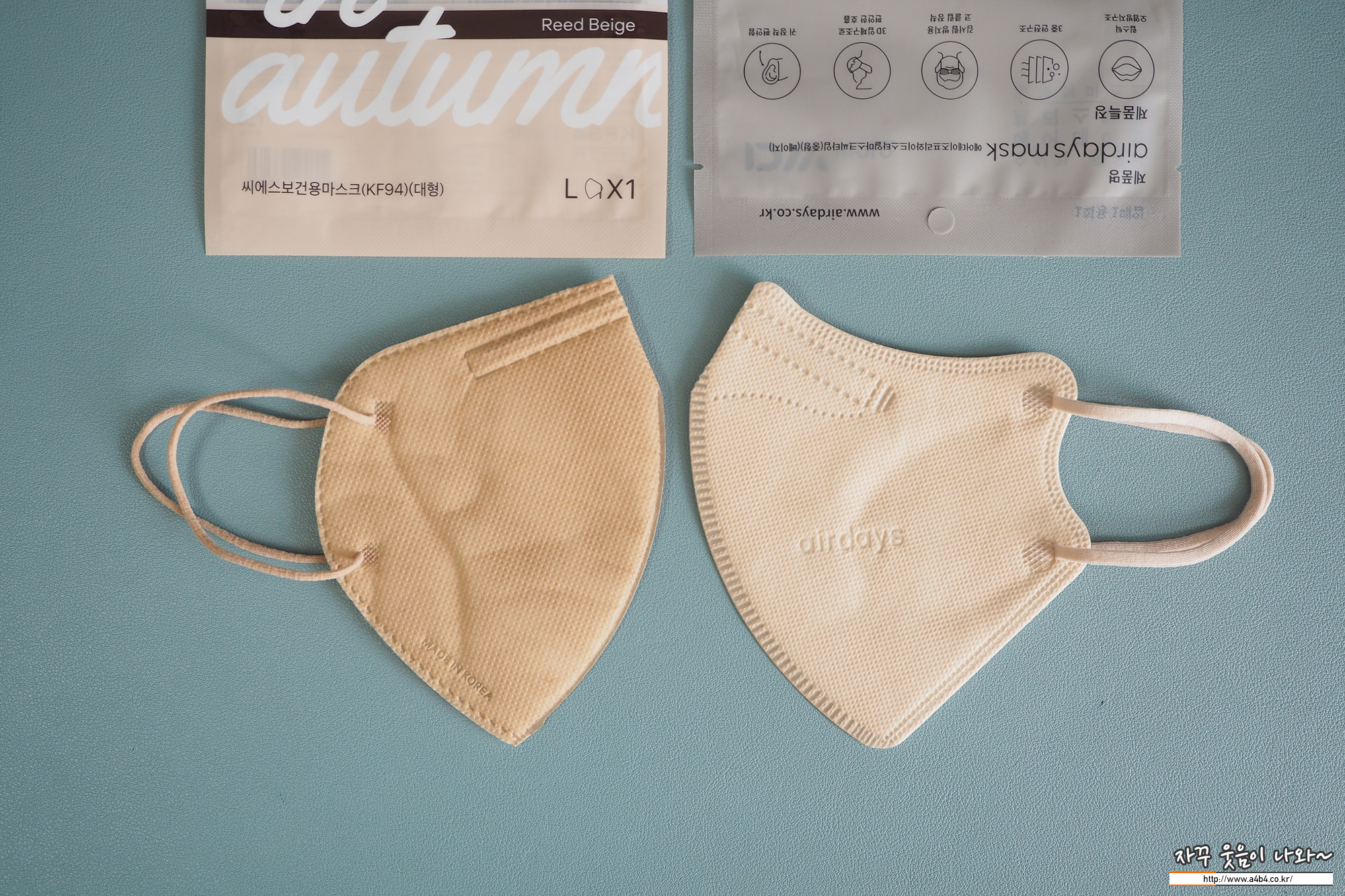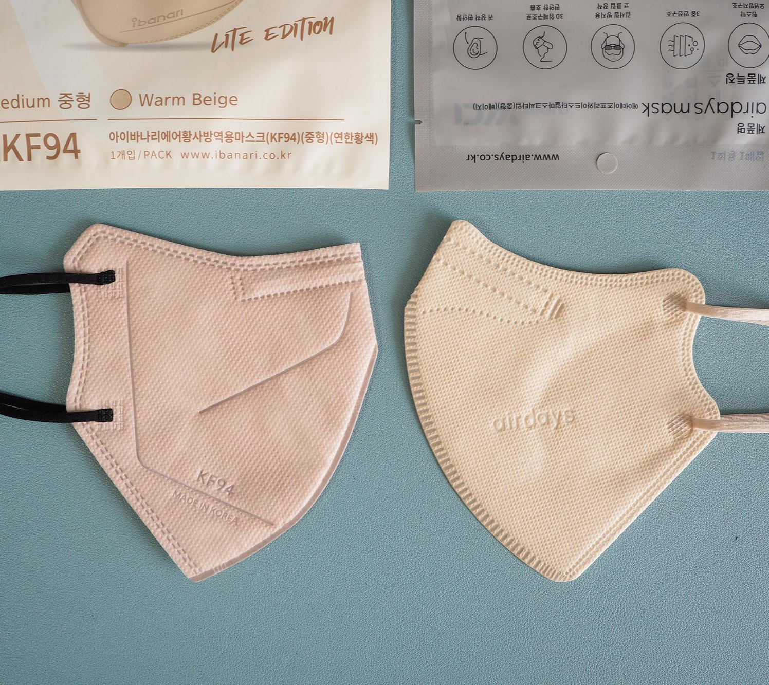 쿤달마스크 베이지컬러와 에어데이즈 베이지 마스크와 색상비교