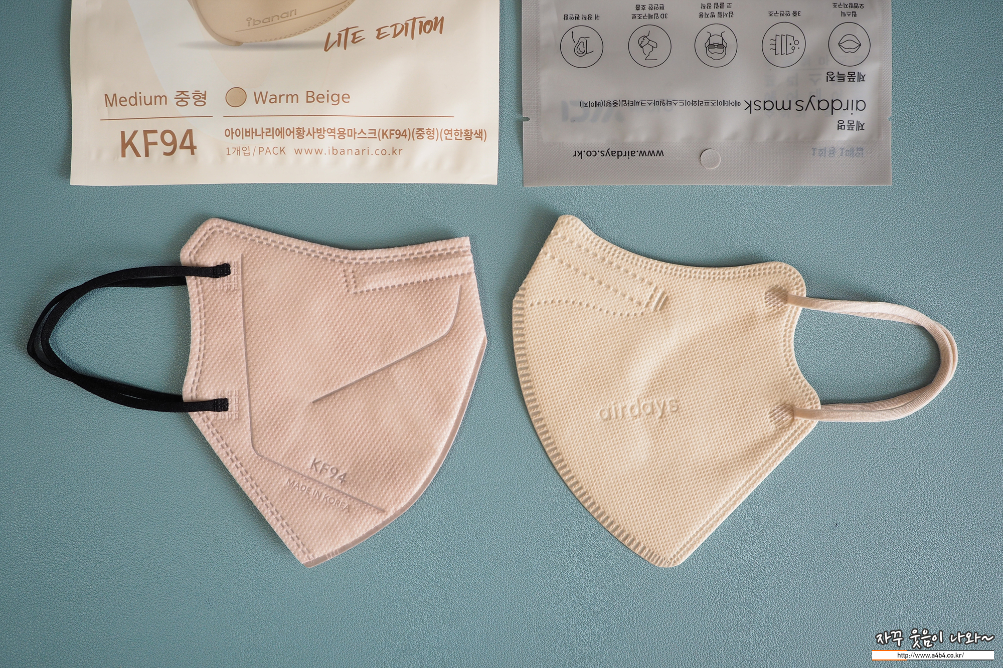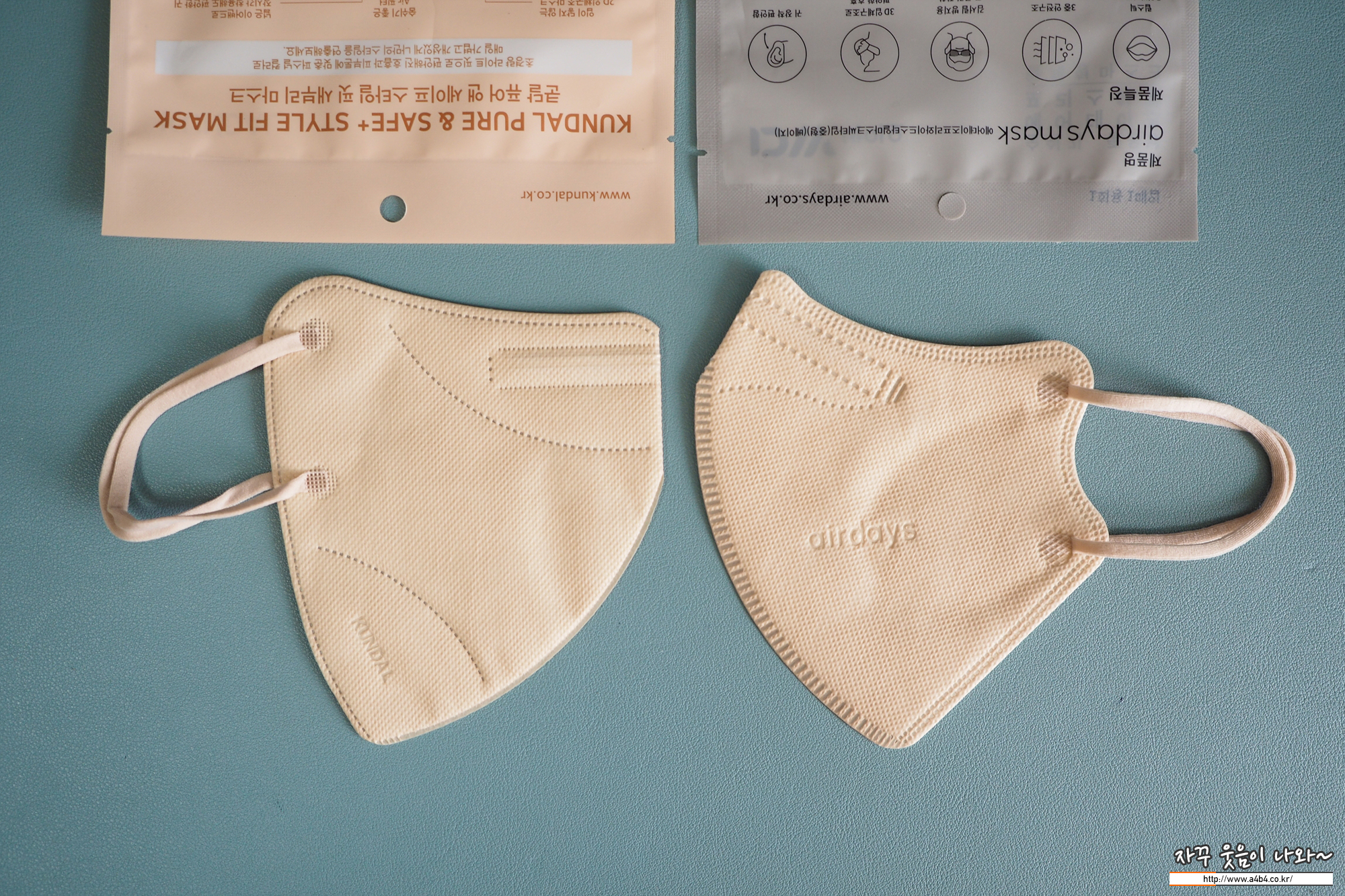 쿤달마스크 베이지컬러와 에어데이즈 베이지 마스크와 색상비교