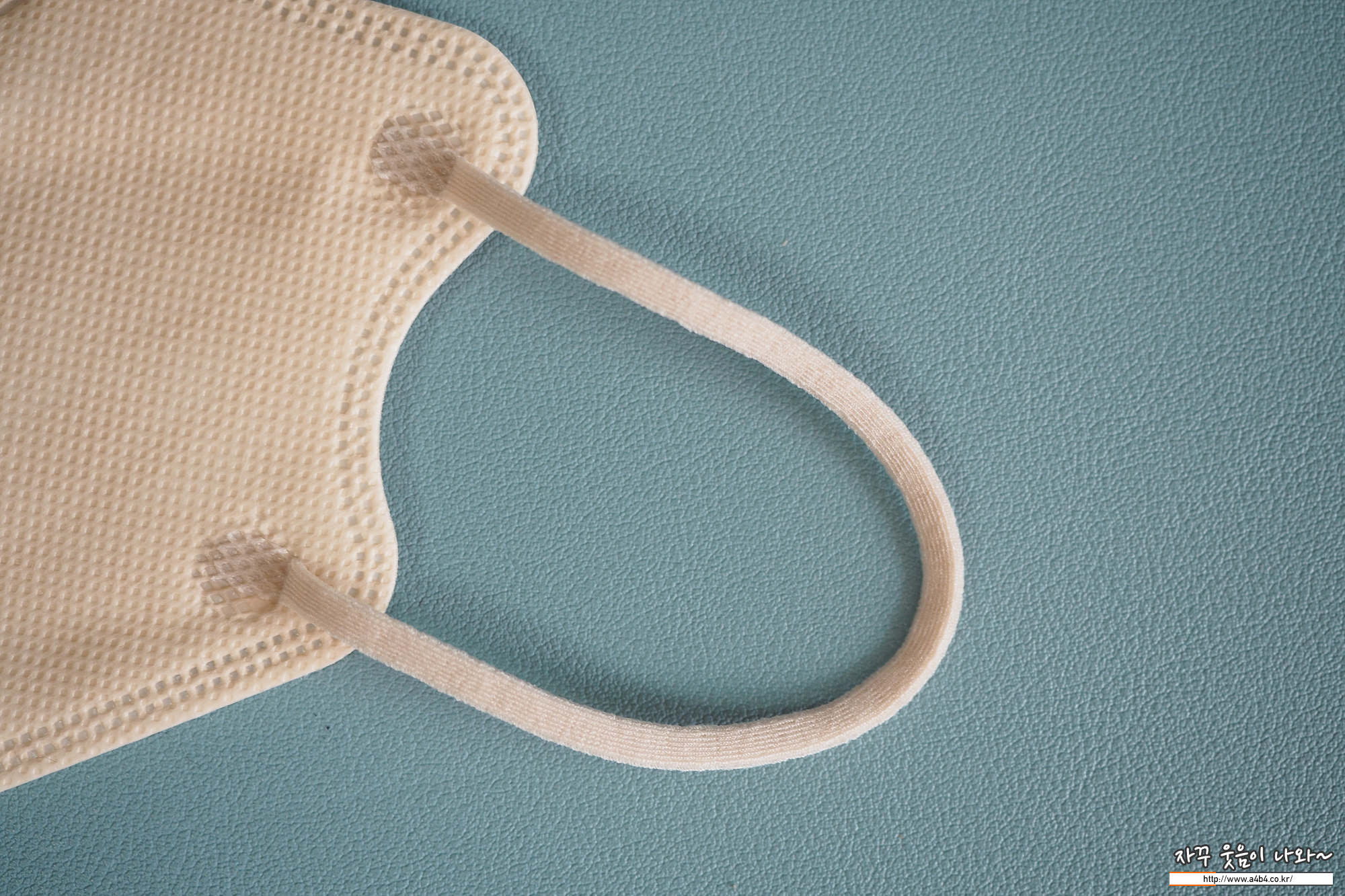 새부리형 에어데이즈 마스크 베이지컬러에 사용된 이어밴드는 기존 KF 에어데이즈 보건용마스크에 사용된 납작한 타입의 칼국수 이어밴드가 앞면에 접착되어 있습니다. 밴드 탄력은 일반적은 수준이며, 컬러 또한 부직포와 동일한 컬러로 제작되어 있습니다.