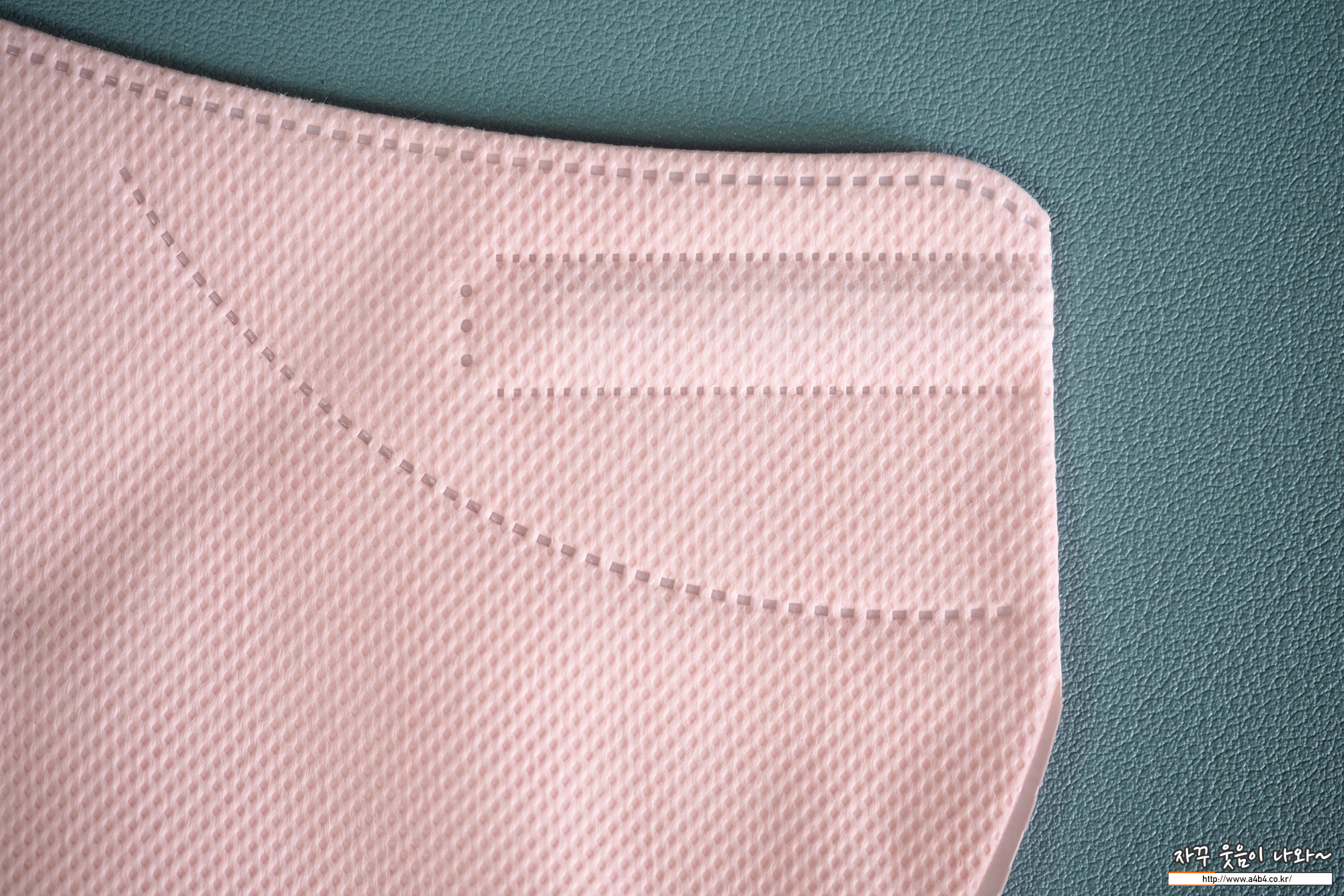 쿤달 컬러마스크 Pink는 가장 기본적인 발색을 보여줍니다. 보통 타사제품에서 '핑마'라고 불리는 컬러를 생각하시면 됩니다. 마스크 외피는 무광에 가까운 도트커리된 부직포로 안정적이고 깔끔한 색상을 보입니다.