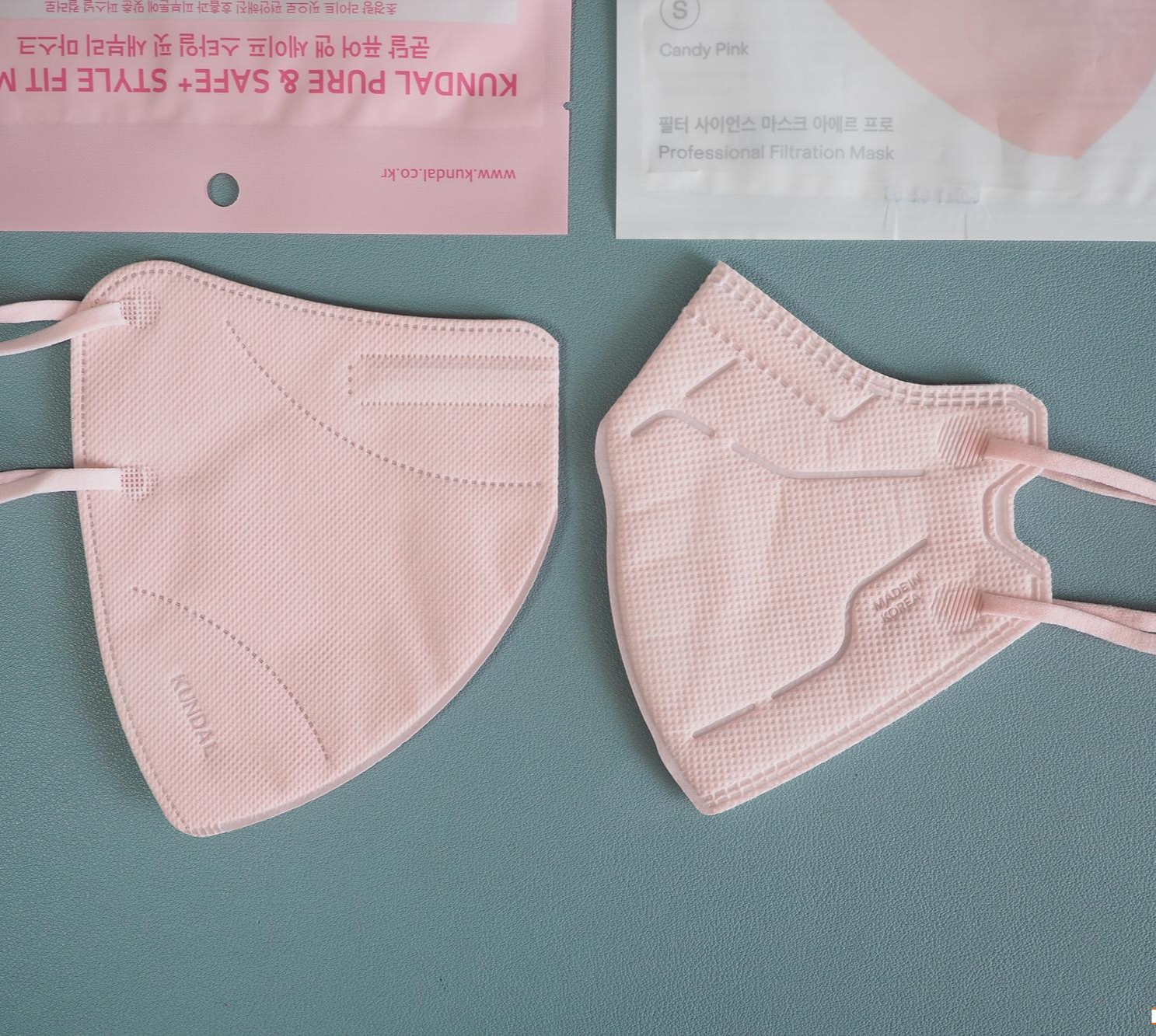 쿤달 컬러마스크 Pink는 가장 기본적인 발색을 보여줍니다. 보통 타사제품에서 '핑마'라고 불리는 컬러를 생각하시면 됩니다. 마스크 외피는 무광에 가까운 도트커리된 부직포로 안정적이고 깔끔한 색상을 보입니다.