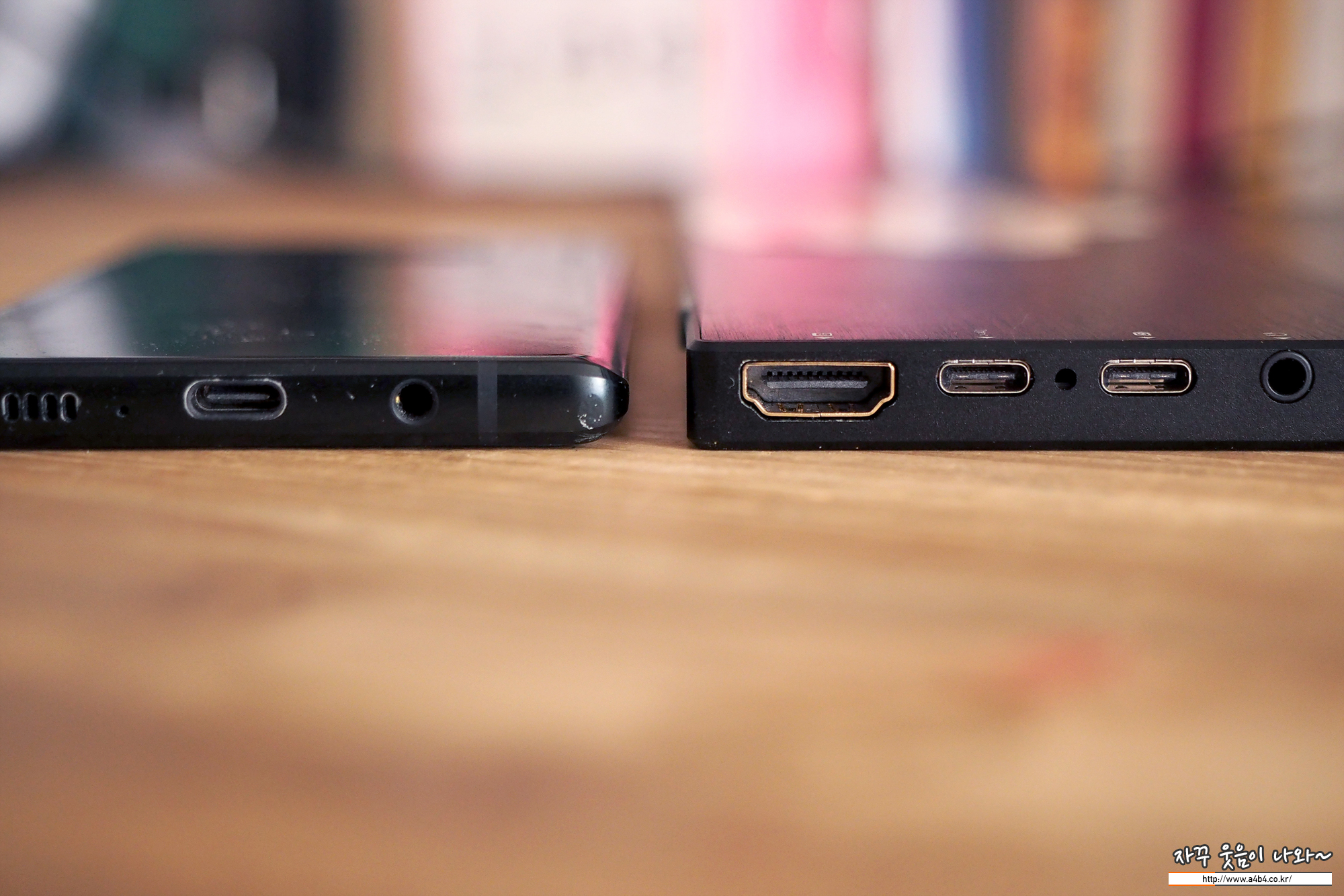 또한 휴대폰 전원으로 별도 전원 없이 구동할 수 있지만, 배터리는 광탈입니다. 다만 포터블 모니터에 전원을 연결하면 휴대폰이 충전되면서 이용이 가능합니다.