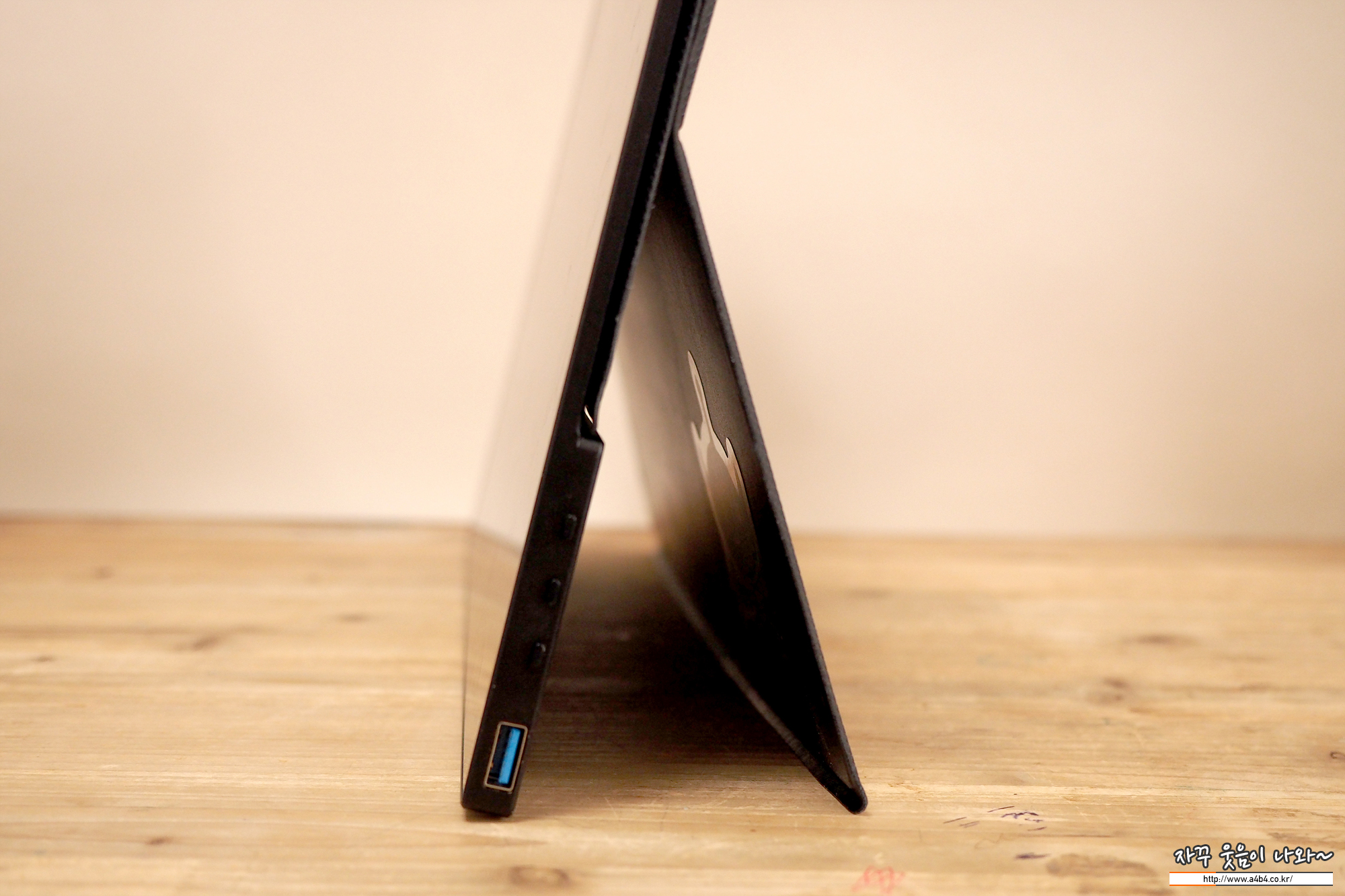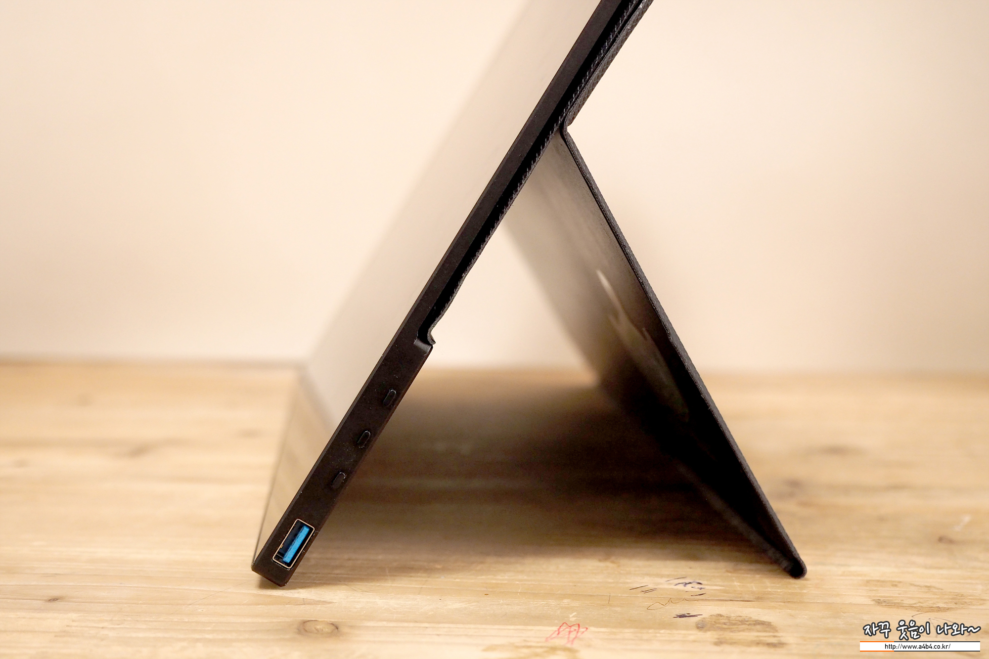 이런 방식으로 한성컴퓨터 39.62cm FHD DEX 포터블 HDR 멀티터치 휴대용 모니터 각도 조절이 가능한데, 처을 사용할때는 상당히 어설프다. 넘어지겠다. 생각했지만 5개월 가까이 사용하다 보니 그런 문제도 없고 생각보다 잘 고정됨