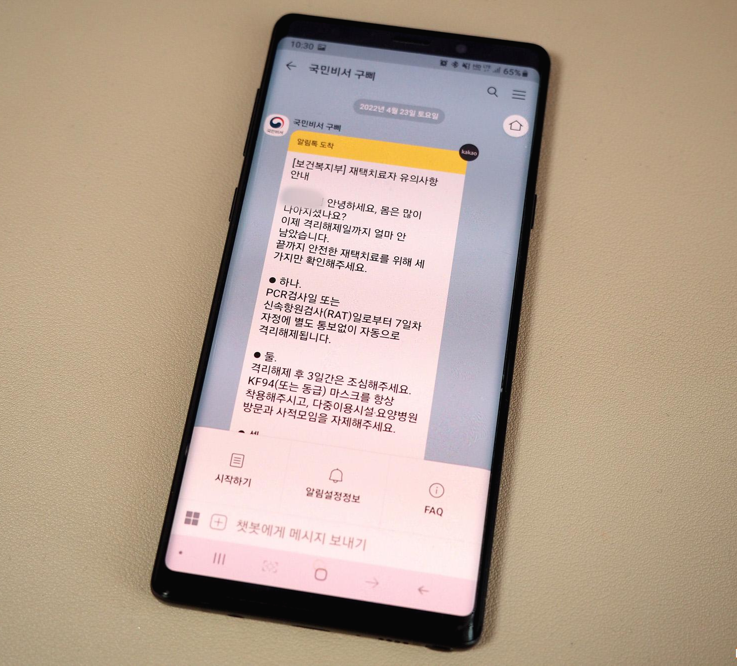 보건소 PCR검사 6일차 오전에 받은 문자 : 검사 7일차인 내일 24:00 기준으로 격리해제 된다고 한다.