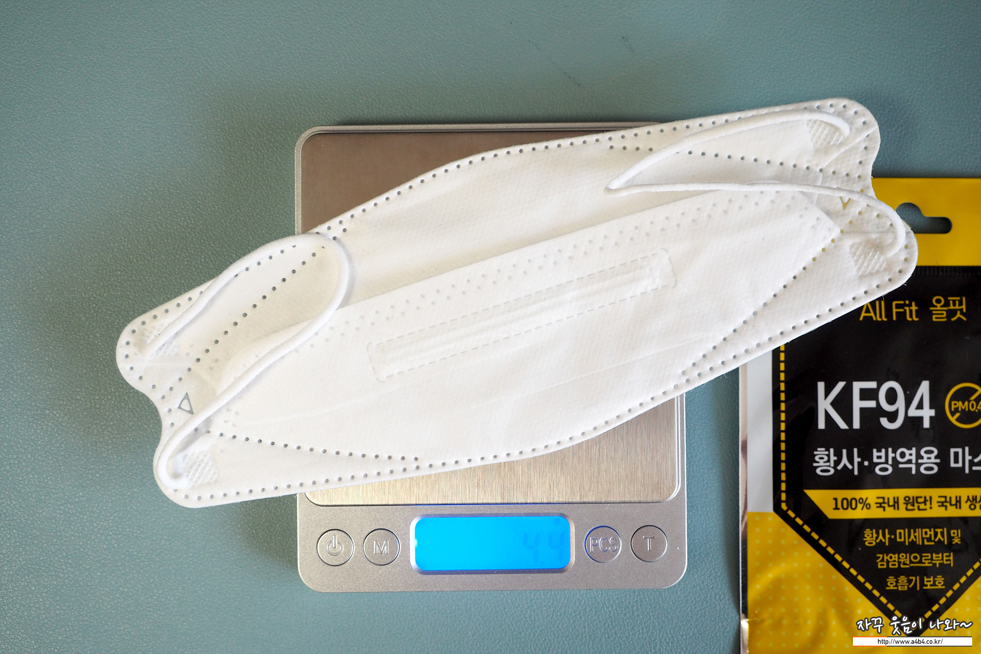 올핏 마스크 KF94 대형 중량은 4.4g으로 일반 KF94 대형 제품에 비해 조금 가벼운 중량을 보입니다.