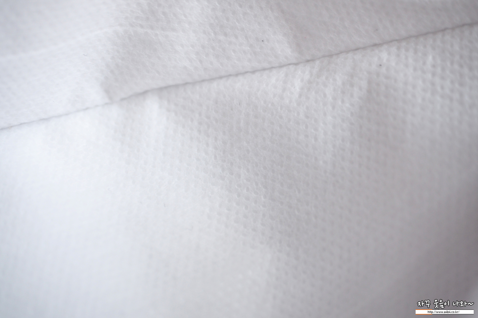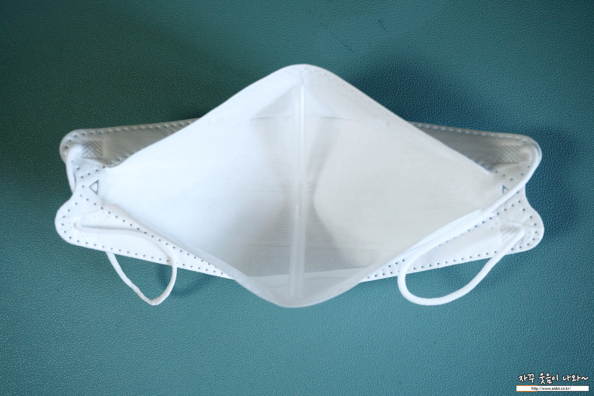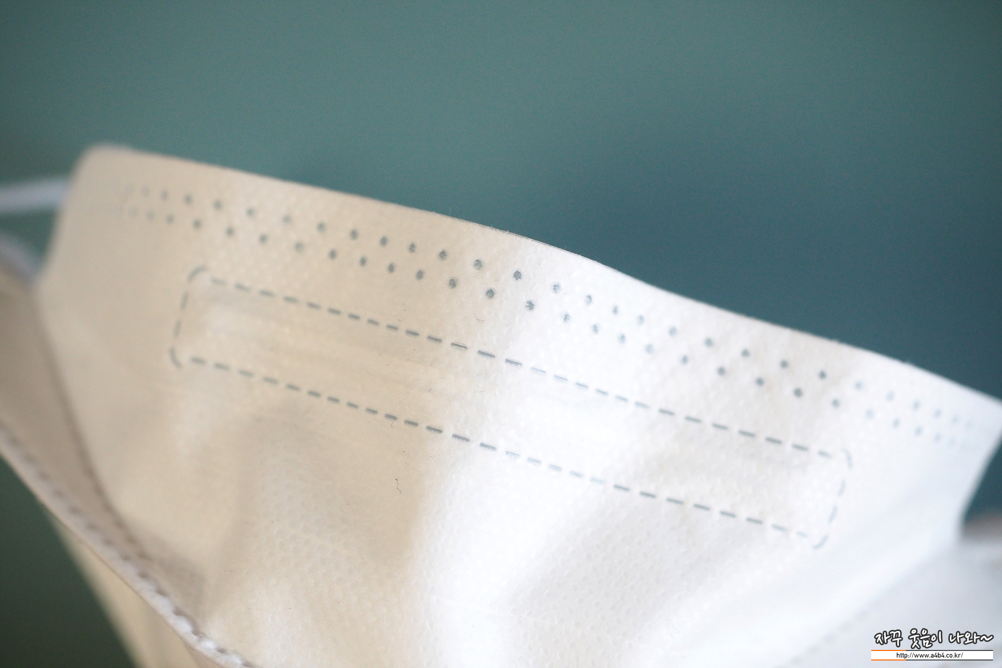 올핏 황사방역용 마스크 내피는 보드라운 촉감의 부직포가 사용되었습니다. 무엇보다도 사진과 같이 내피에 상당히 많은 보풀이 일어나 있습니다. (착용전 사진)