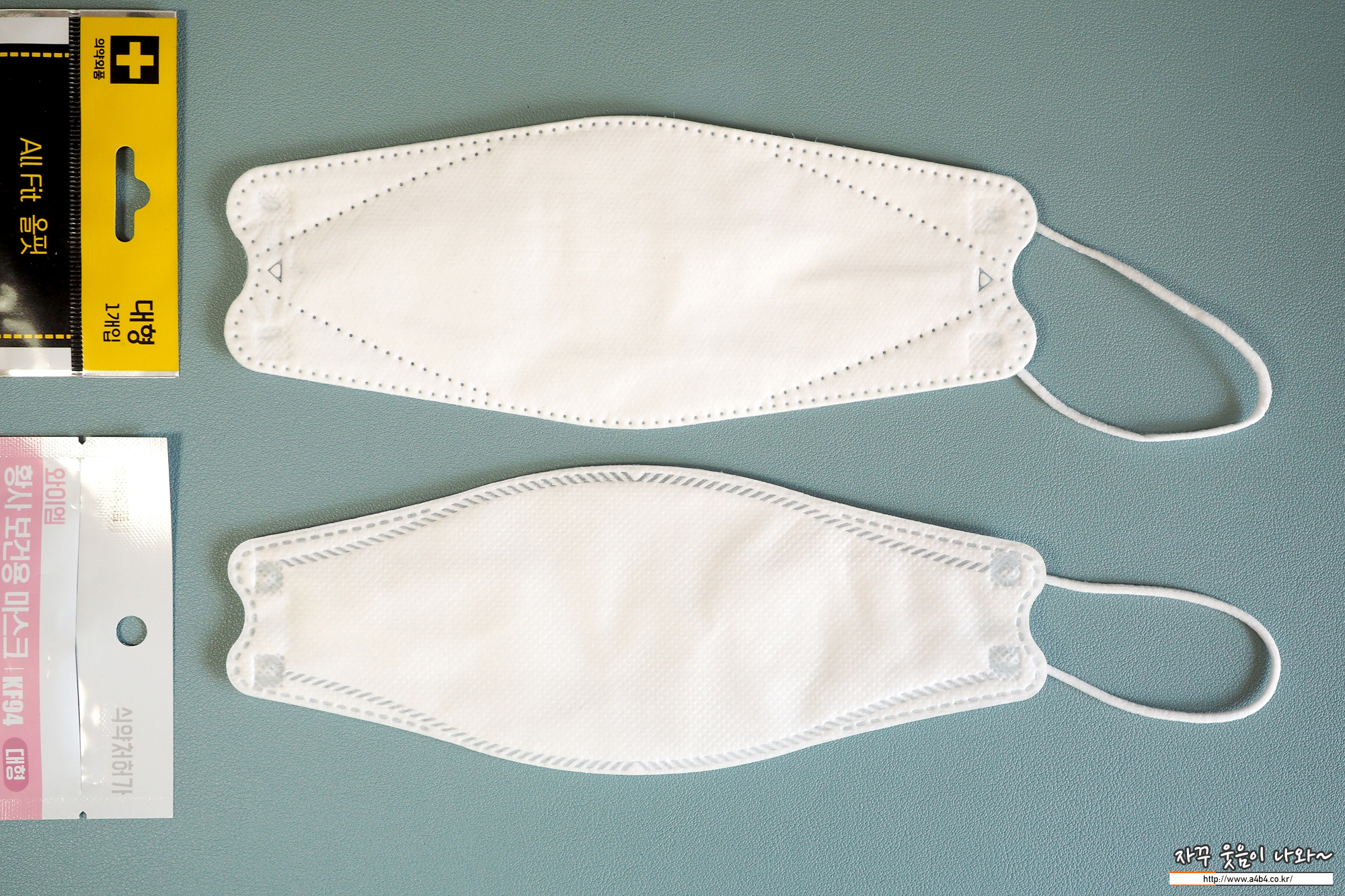 올필 마스크는 일반적인 3단접이식 3D 타입 제품으로 귀모양의 접합부분과 삼각형 각인등 다른 브랜드의 여러 제품에서 쉽게 볼수 있는 일반적인 스타일의 마스크입니다.