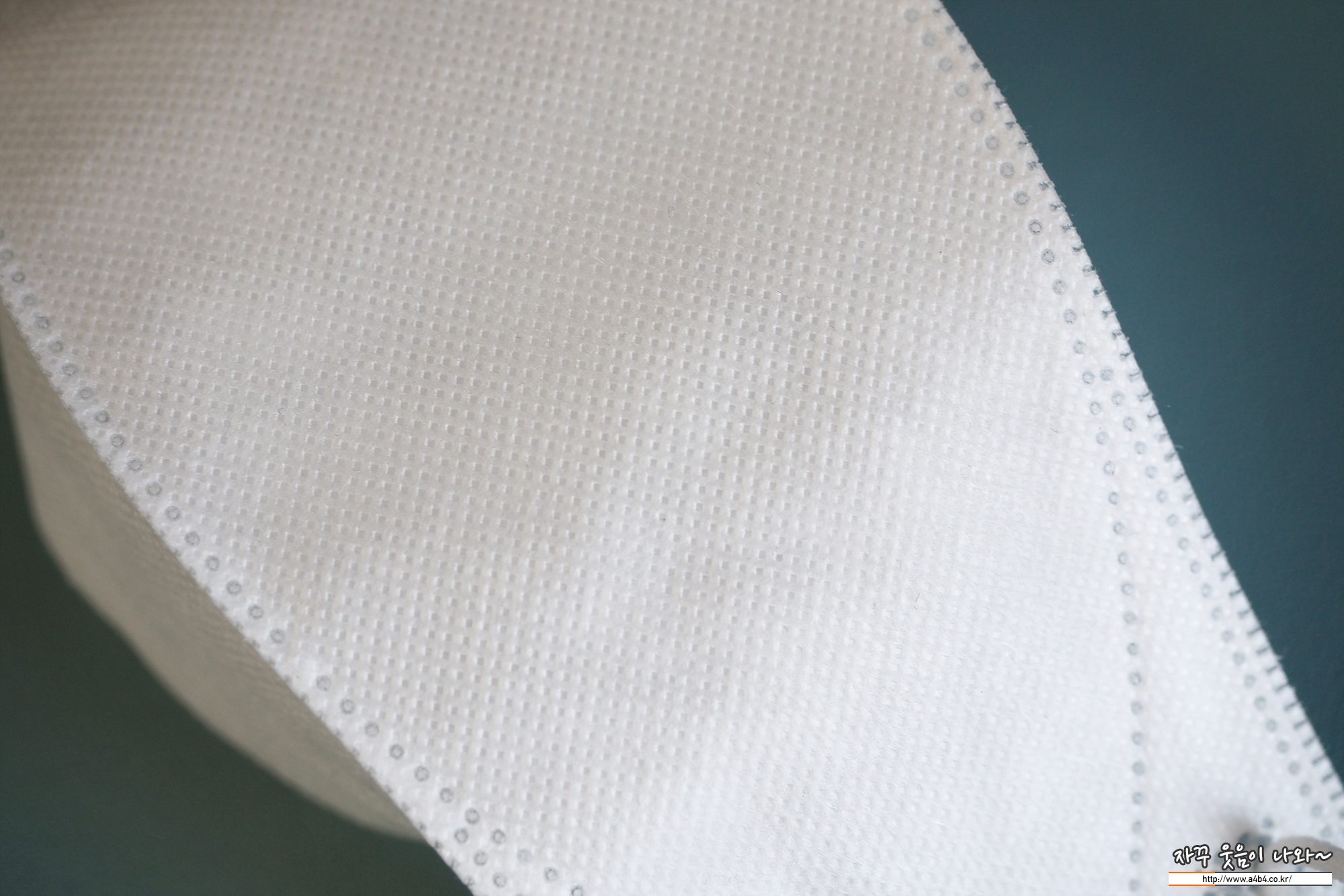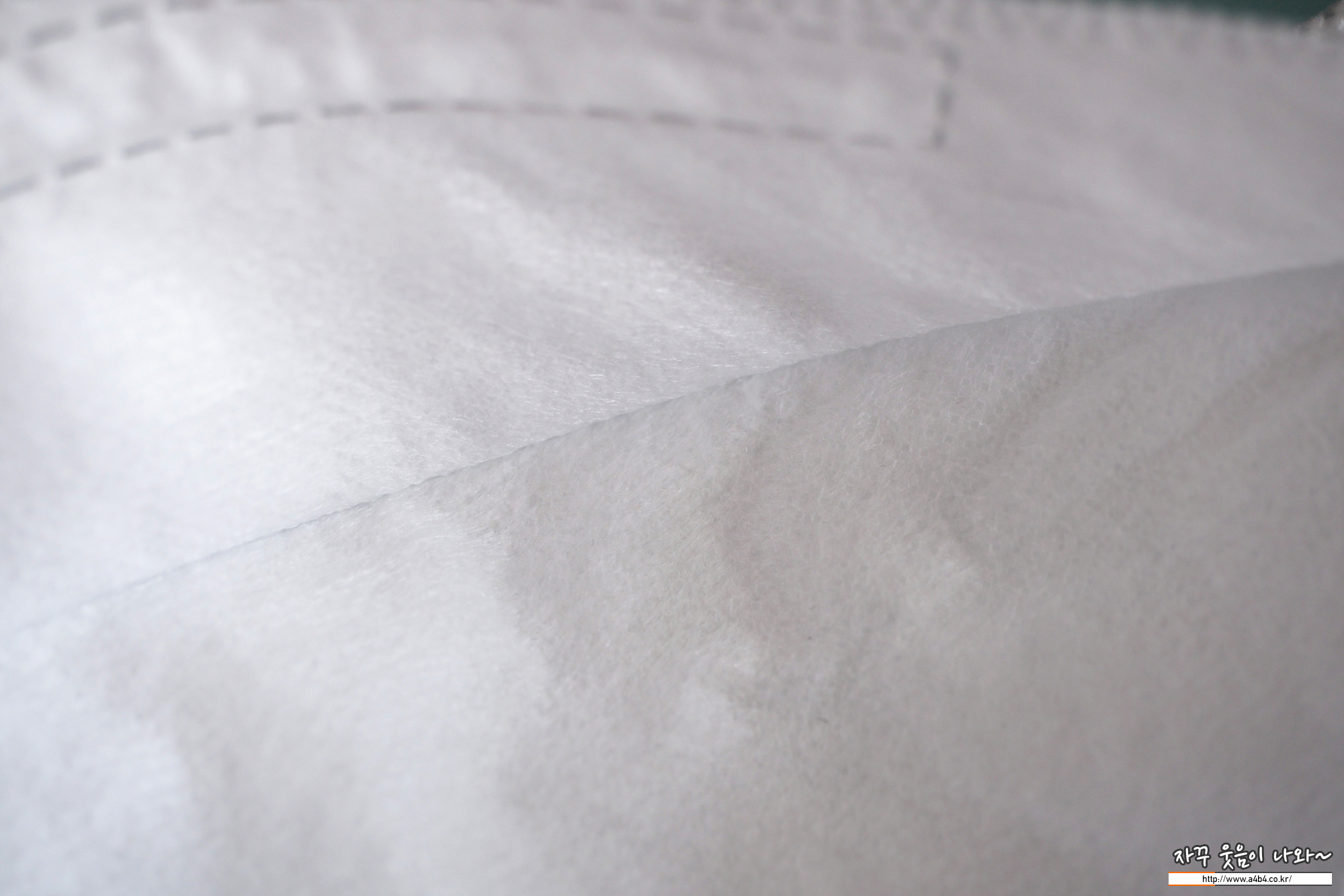 KF94 퓨리엔 힐링가드 방역마스크 내피는 드라이한 촉감의 부직포가 적용되었습니다. 여기서 힐링가드 마스크의 큰 단점과 불편한 문제점이 있는데요. 바로 마스크 내피에 일어나있는 보푸라기입니다.(위 아래 사진은 착용전 사진입니다.)
