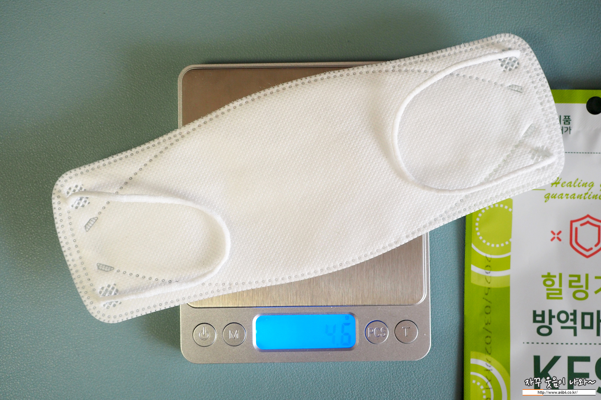 KF94 힐링가드 마스크 대형 중량은 4.6g으로 타사 제품과 비슷한 중량을 보입니다.