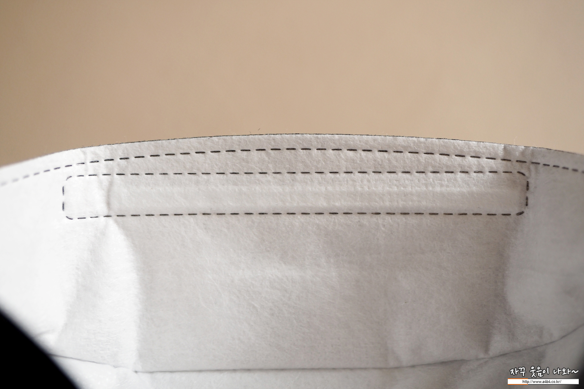 KF94 세이프에서 마스크 대형 내피는 보드라운 감촉의 부직포가 사용되었습니다. 마스크에서 약간의 약품냄새가 느껴지고요 (곧 사라지지만...) 가장 아쉬운 부분은 내피에 보푸라기가 많이 있습니다. 하루종일 마스크를 착용하고 있다보면 간간히 코나 얼굴에 가려움이 생깁니다.