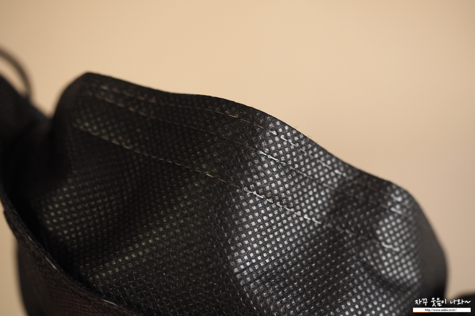 KF94 세이프에서 마스크 대형 내피는 보드라운 감촉의 부직포가 사용되었습니다. 마스크에서 약간의 약품냄새가 느껴지고요 (곧 사라지지만...) 가장 아쉬운 부분은 내피에 보푸라기가 많이 있습니다. 하루종일 마스크를 착용하고 있다보면 간간히 코나 얼굴에 가려움이 생깁니다.