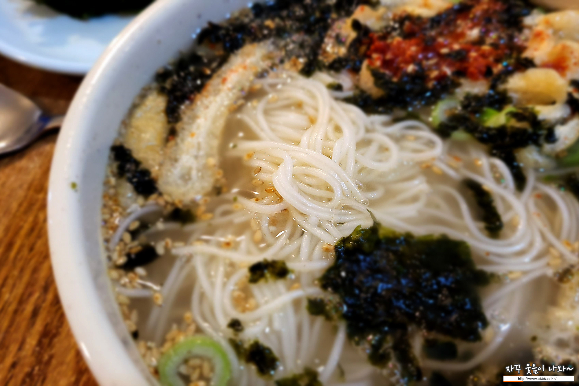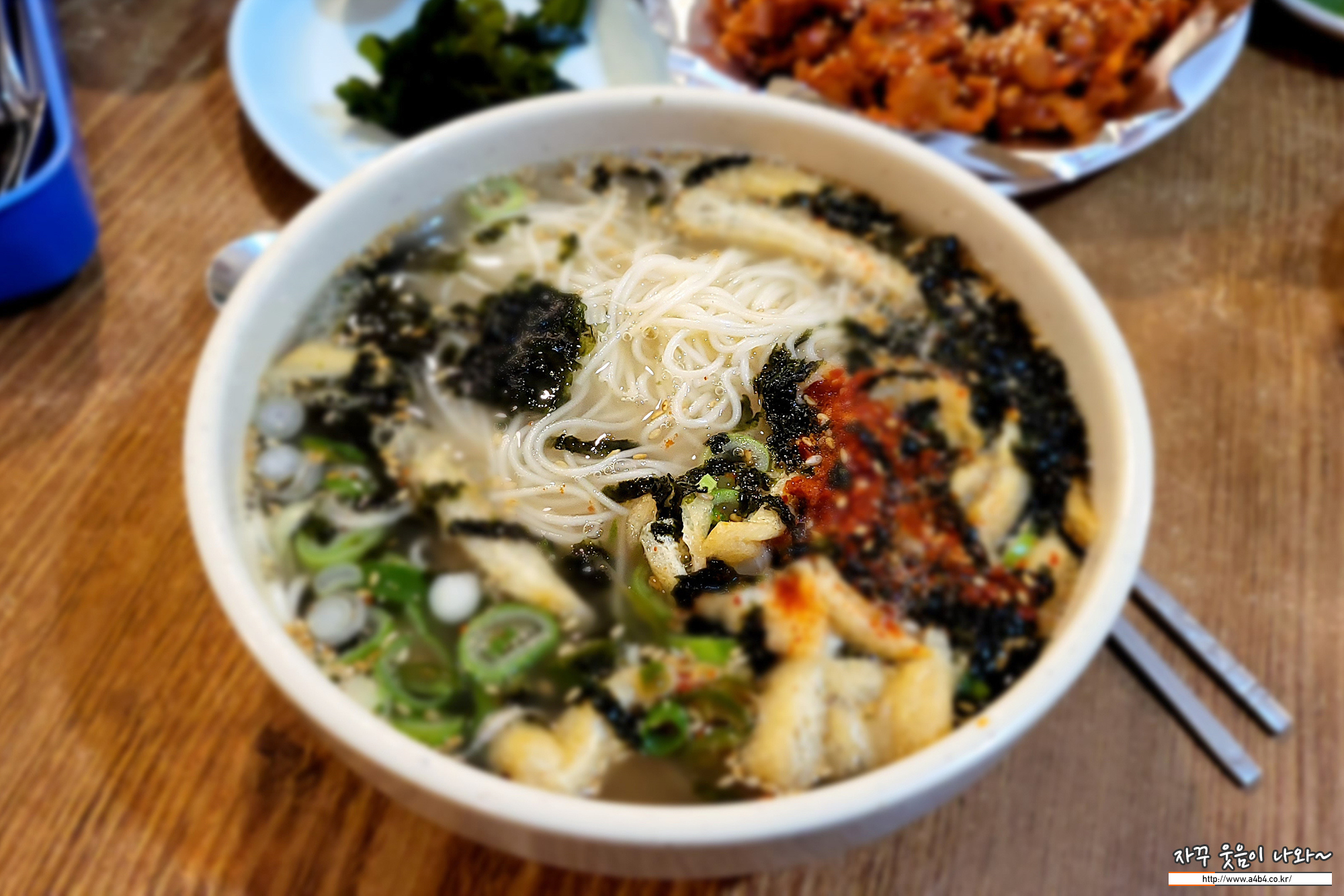 맛은 아주 기본적인 유부가 들어간 멸치국수 맛집입니다. 엄청나게 맛있지도, 맛없지도 않은...