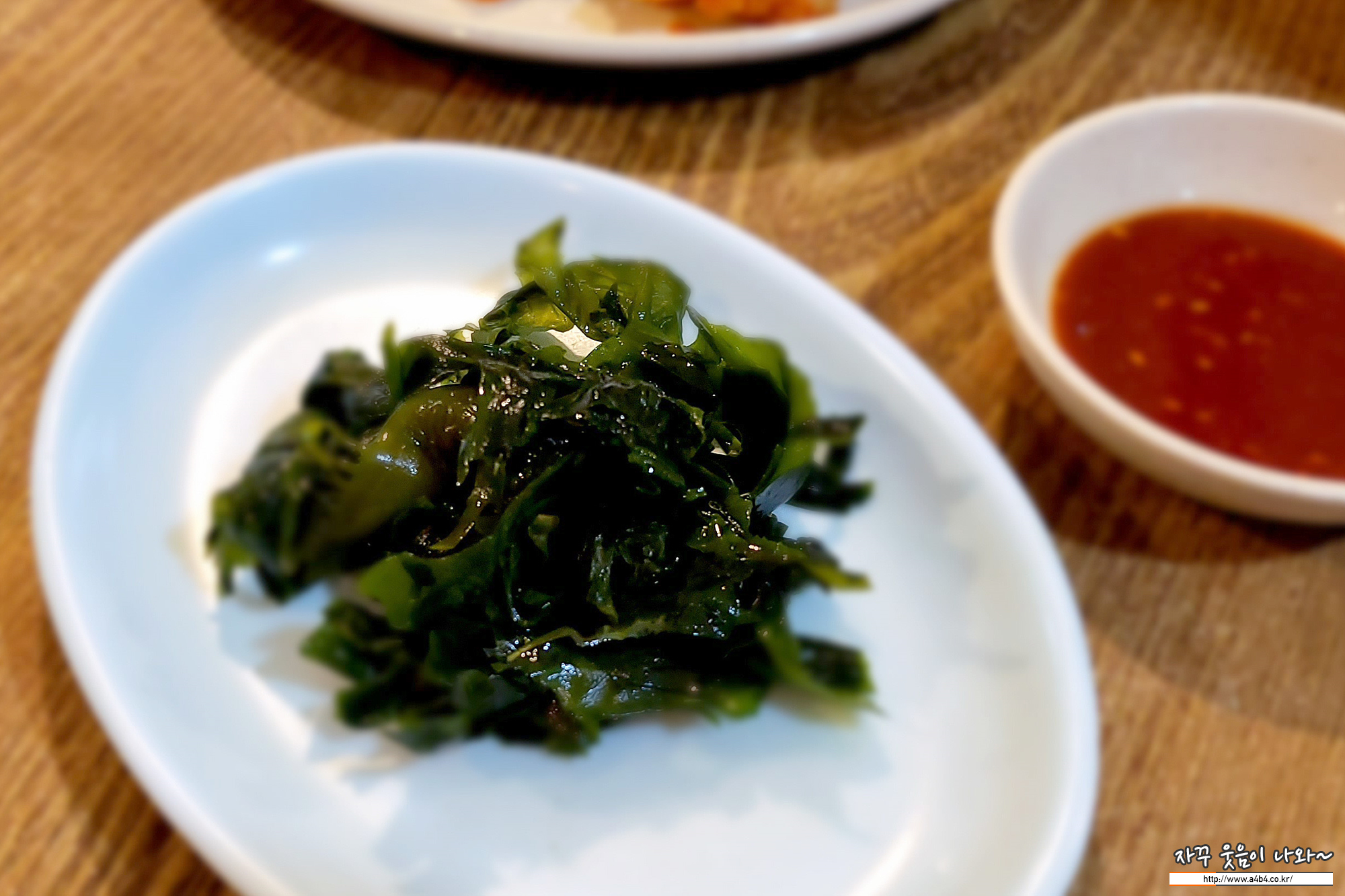 기본 반찬은 미역줄기와 김치가 나오네요.
