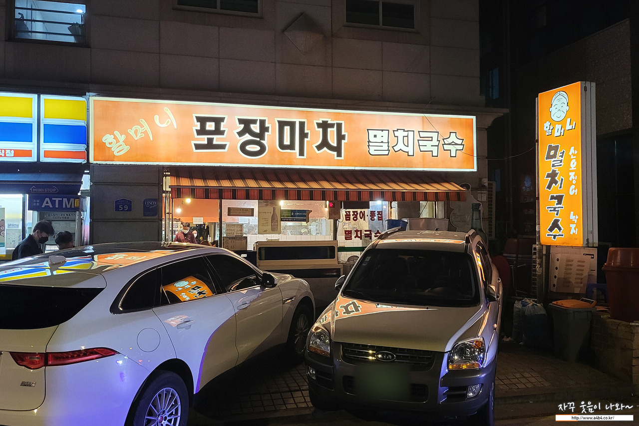 서울 송파구 방이동 먹자골목에 위치한 멸치국수 맛집이자 선술집인 '할머니 포장마차 멸치국수' 방문후기입니다.