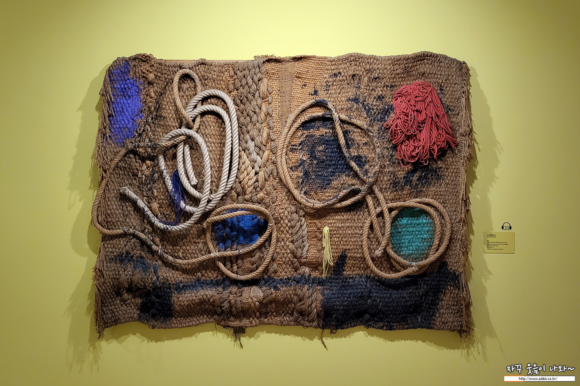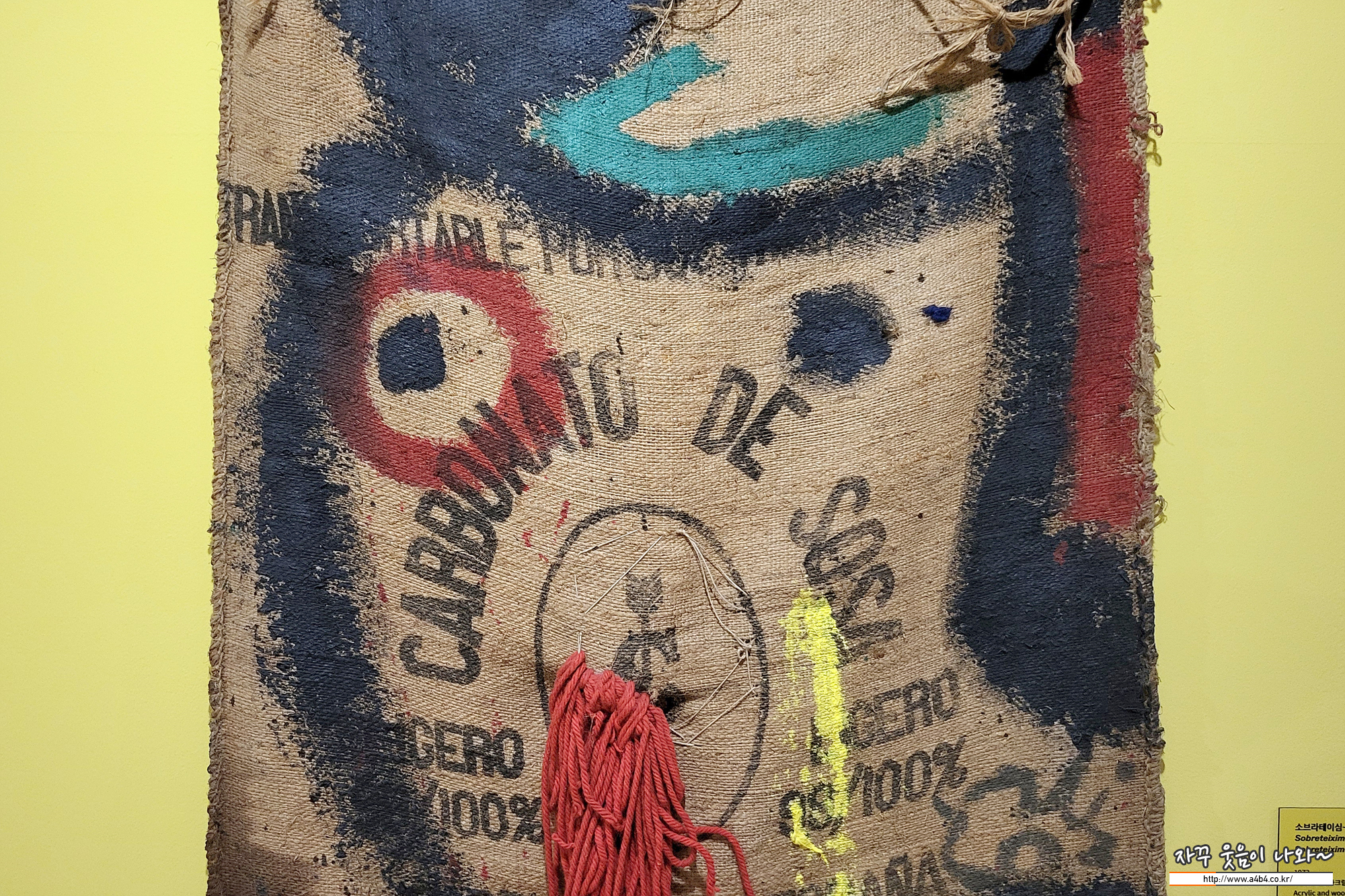 미로는 소브라테이심이라는 직물을 직접 제작했던 것과는 또 다른 노선으로 이미 만들어진 직물을 재료로 선택하기도 했습니다. 미로가 관심을 가졌던 재료는 바로 물건을 담는 용도를 지닌 포대자루였습니다.