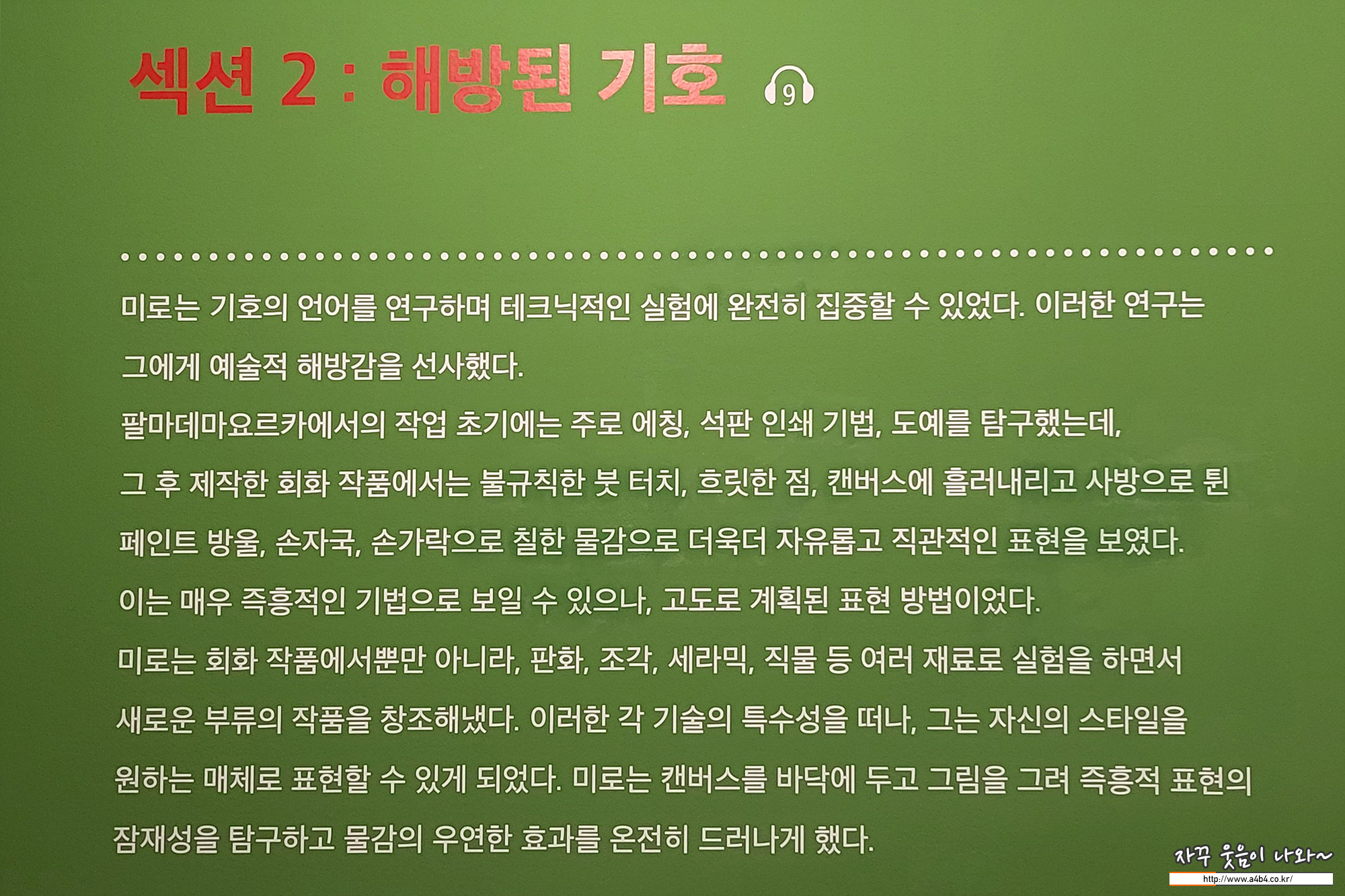 이번 마이아트뮤지엄에서 열리는 호안 미로 전시 전시장 풍경소개