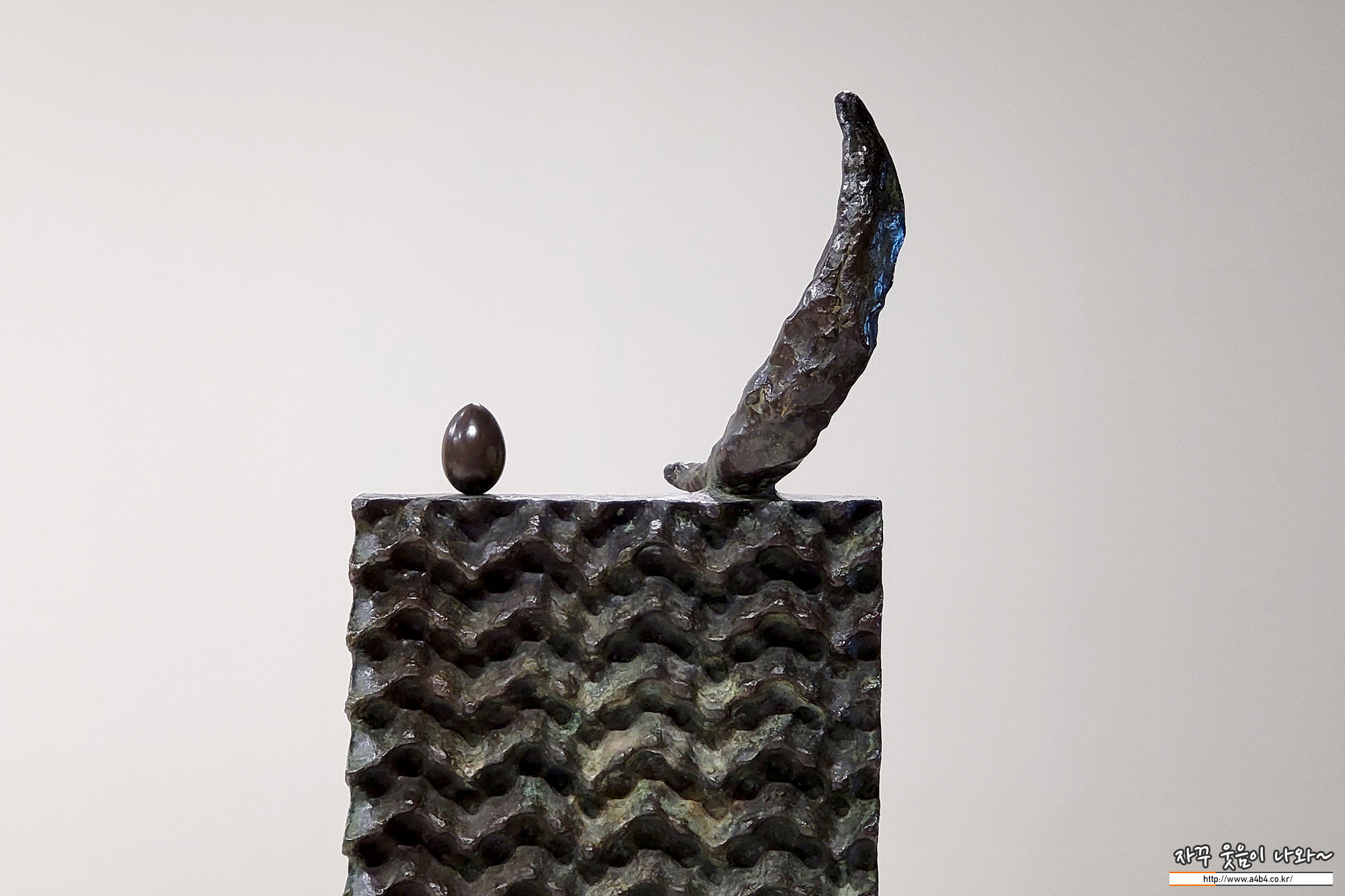 ‘사람과 새’는 상상력을 자극하는 또 다른 미로의 조각 중 하나로 땅을 딛고 있는 사람의 발과 그 위에 새가 얹혀 있는 작품입니다. 새는 미로에게 마법적인 요소를 가진 존재로 하늘과 땅을 이어주는 사다리와 같은 역할을 합니다. 작품을 바라보면 발과 땅, 하늘과의 관계에 질문을 던질 수 있습니다. 자연과의 교감을 중요시했던 미로는 조각 작품을 통해 대지의 강한 힘과 하늘과의 깊은 유대감을 관람자에게 전달하고 싶었을지도 모릅니다. 여기서 발은 사람과 땅을 이어주는 부분이며 땅에서 멀어지게 하는 부분이기도 합니다. 땅에 닿은 발은 땅에 거주하는 현실을 담아냄과 동시에 하늘로 뛰어오르기위한 발돋움의 단계를 상징합니다.