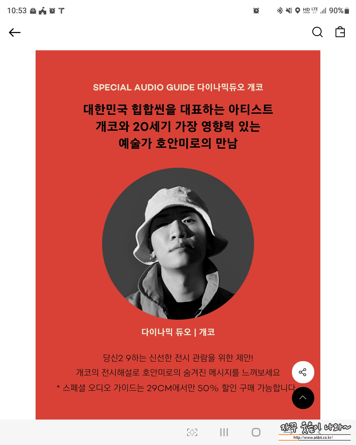 현장 정규 도슨트는 평일 3회 진행되며, 해당 시간 방문이 어려운 분들은 오디오도슨트를 통해 작품설명을 들으실 수 있습니다. 3천원 유료판매되고 있으며, 29cm를 통해 50% 할인된 가격에 이용가능합니다.
