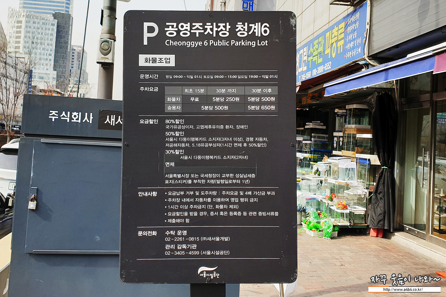청계천 애완동물거리 주차장 및 주차요금은 아래 창신동 문구거리 소개 후 자세하게 알려 드릴께요.