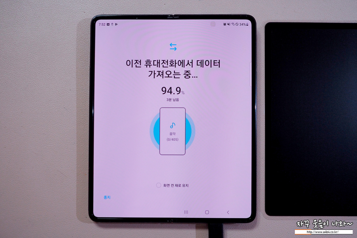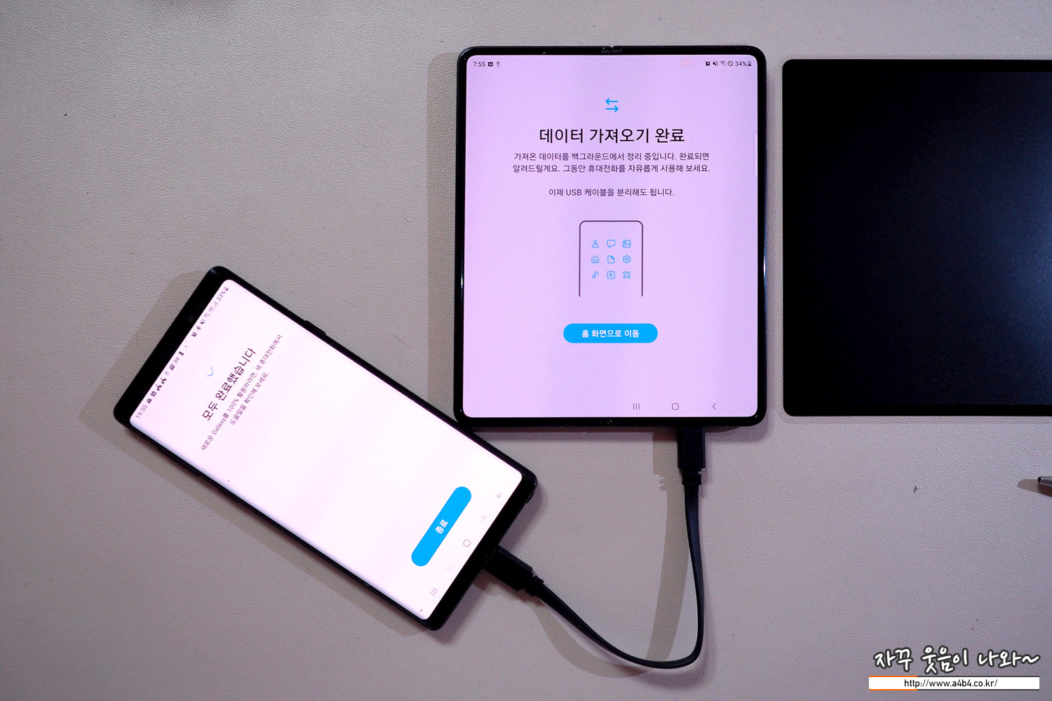1차 기존 휴대폰에서 새 휴대폰으로 데이터 가져오기가 완료되면 케이블을 분리해도 됩니다만...