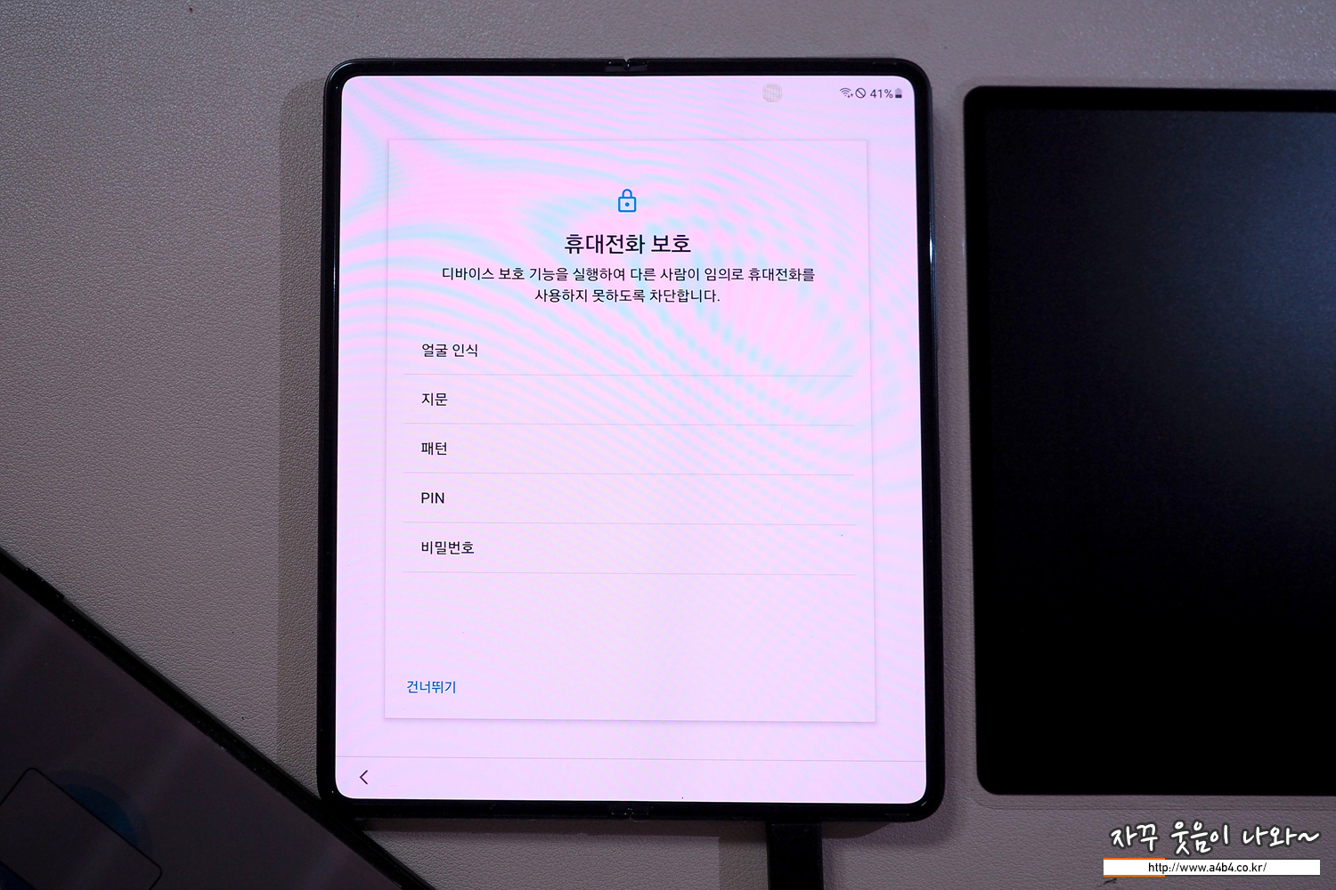 지문등록 및 인증도 삼성 갤럭시 스마스트 스위치 구동중에 등록 및 설정이 가능합니다.