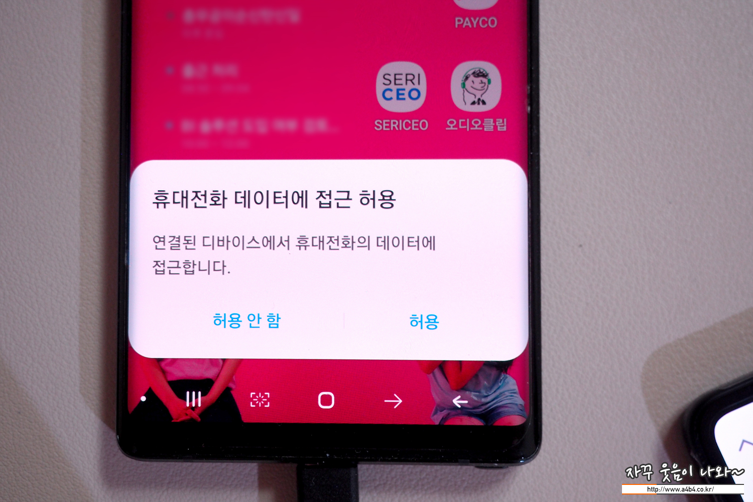 두 휴대폰을 연동하고 데이터 접근권한을 허용하면...