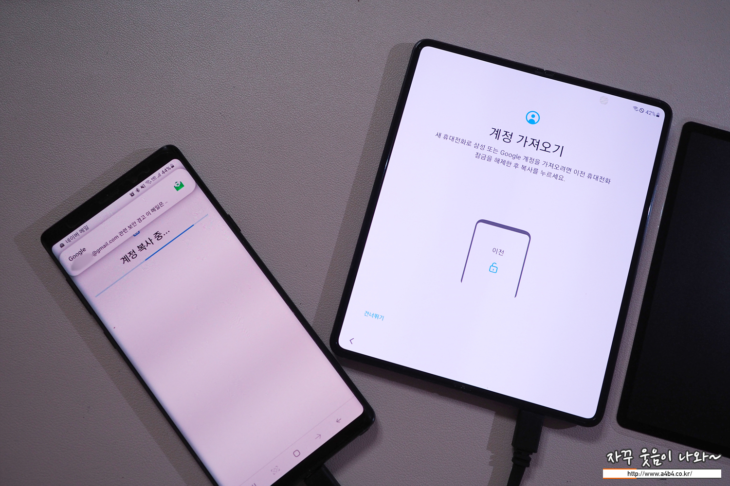저와 딸아이 휴대폰을 변경했습니다. 기존 갤력시노트9에서 갤럭시 폴드3로, 갤럭시A에서 갤럭시 플립으로 기변을 했는데요. 역시나 기존 스마트폰에서 사용하던 데이터를 문제 없이 이동해야 하는 숙제가!
