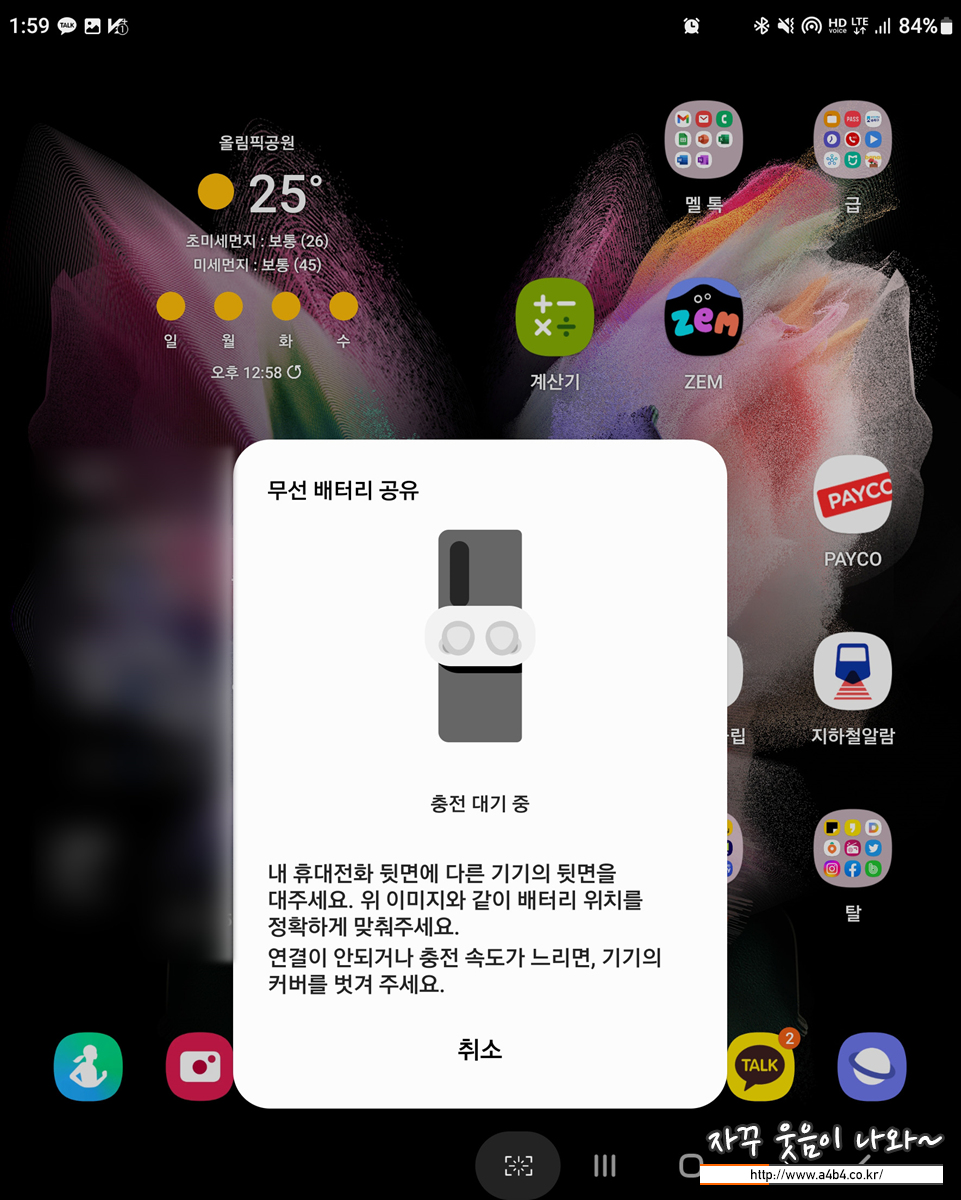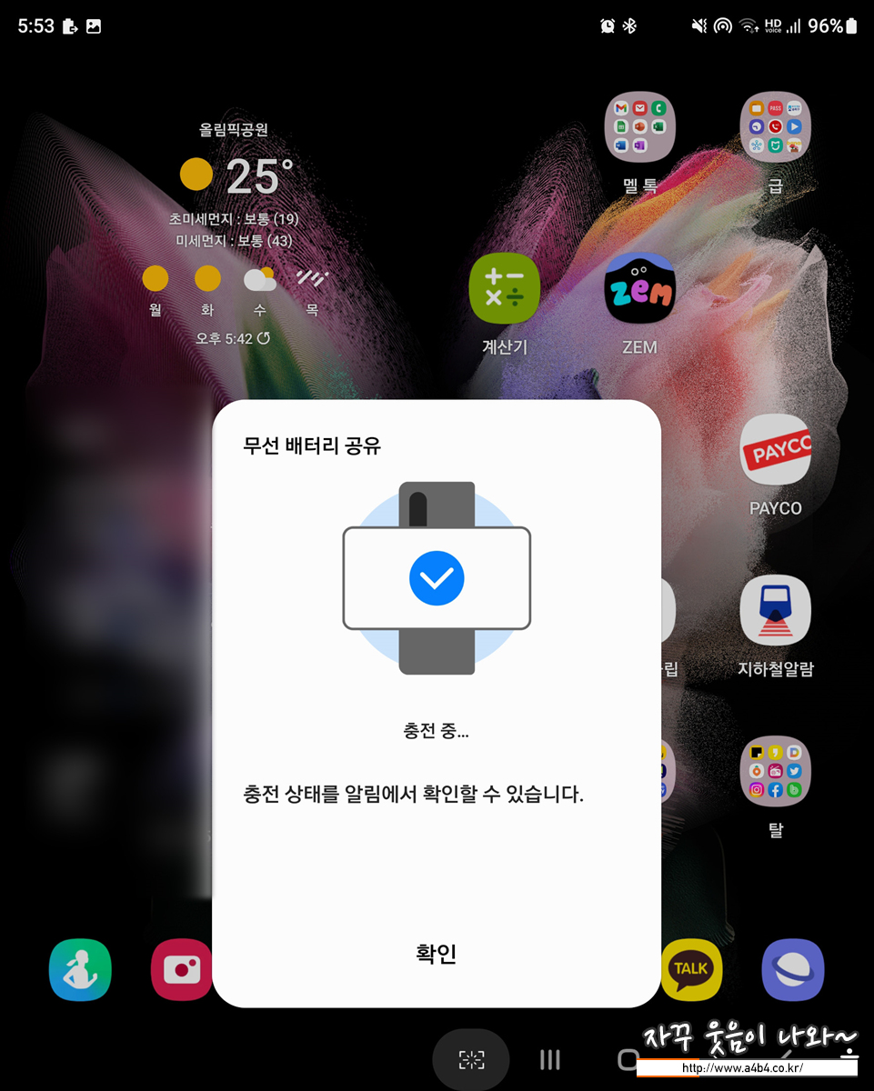 갤럭시 스마트폰에서 지원하는 '무선 배터리 공유' 기능은 단기간 여행이나 출장 등에서 워치나 버즈등의 추가(전용) 충전긱기를 가지고 가지 않아도 되는 편리함과 급히 무선충전이 필요한 경우에 요긴하게 사용할 수 있는데요. 이 부분을 충분히 충족시킨다고 생각합니다.