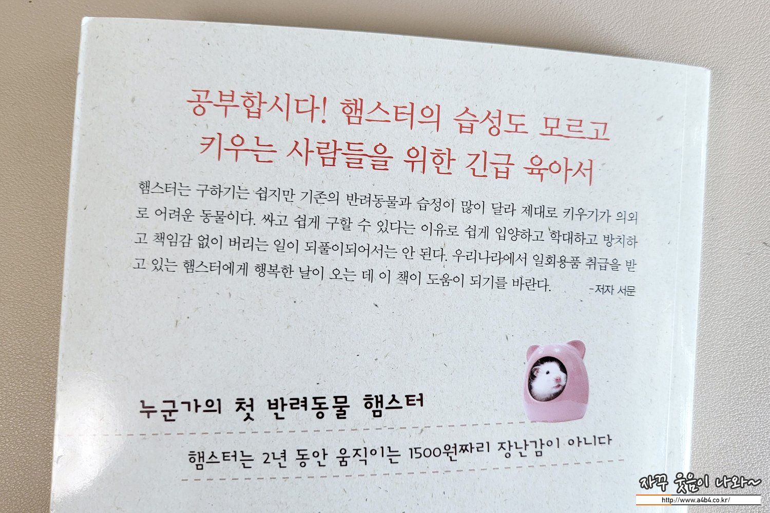 사실 햄스터를 키우겠다고 했지만 햄스터 키우기에 어떤 준비도 없던 가족들, 특히 딸아이를 위해 햄스터 관련 책 한권을 구입합니다. 요즘 스마트폰 때문에 책도 잘 보지 않지만, 이 책은 관심가지고 잘 보기를 기대하면서.