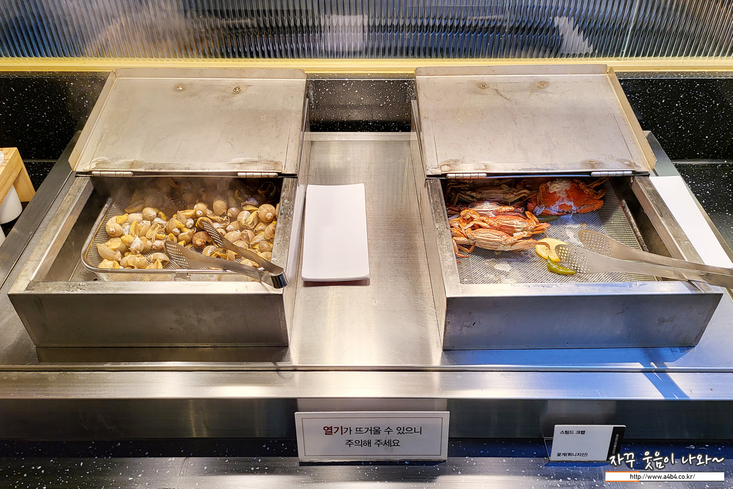홍게는 너무 싱겁고 크랩은 너무 짜고, 회나 초밥, 롤류가 전혀 없는 부분은 상당히 아쉽네요. 한 두 종류는 있을 것으로 기대했는데 아쉽네요.