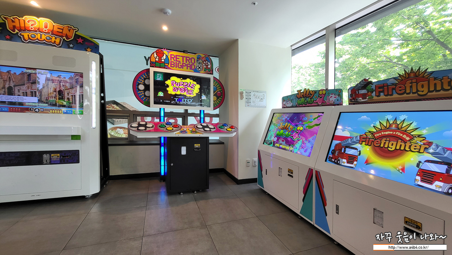 오픈전 방문자나, 대기중인 방문객을 위해서 입구에 작은 게임룸이 있습니다. (거의 불가능한 타입의) 인형뽑기 기계와 몇몇 2인용 오락기가 있습니다. 무료는 아니고 게임당 1천원... 그리고 매장 내에는 아이들을 위한 놀이방도 준비되어 있습니다.