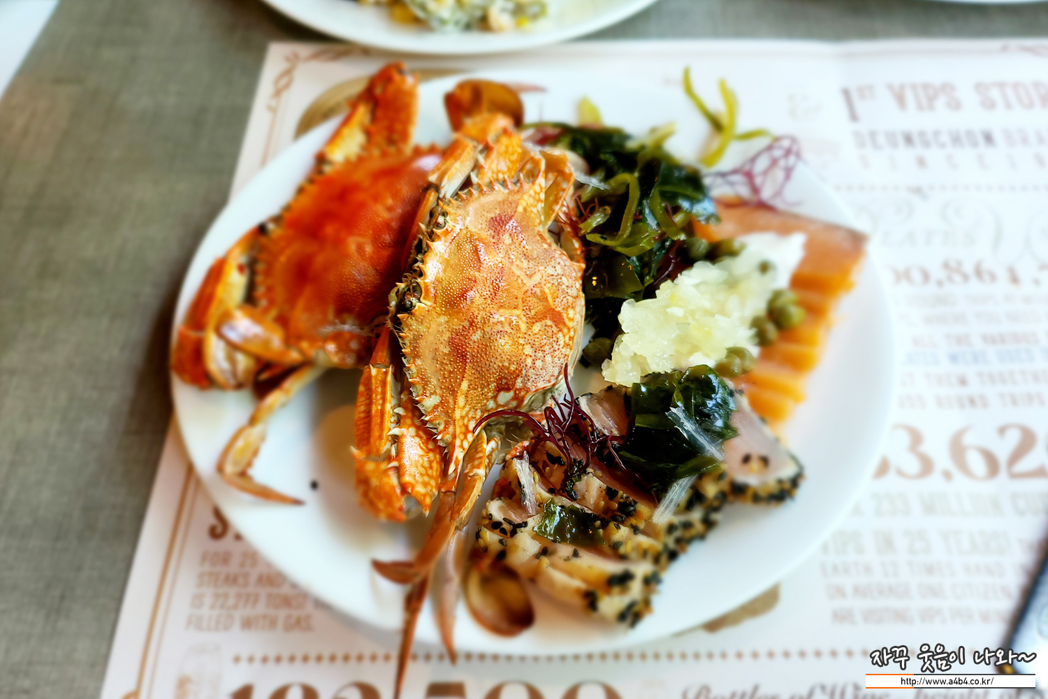 홍게는 너무 싱겁고 크랩은 너무 짜고, 회나 초밥, 롤류가 전혀 없는 부분은 상당히 아쉽네요. 한 두 종류는 있을 것으로 기대했는데 아쉽네요.