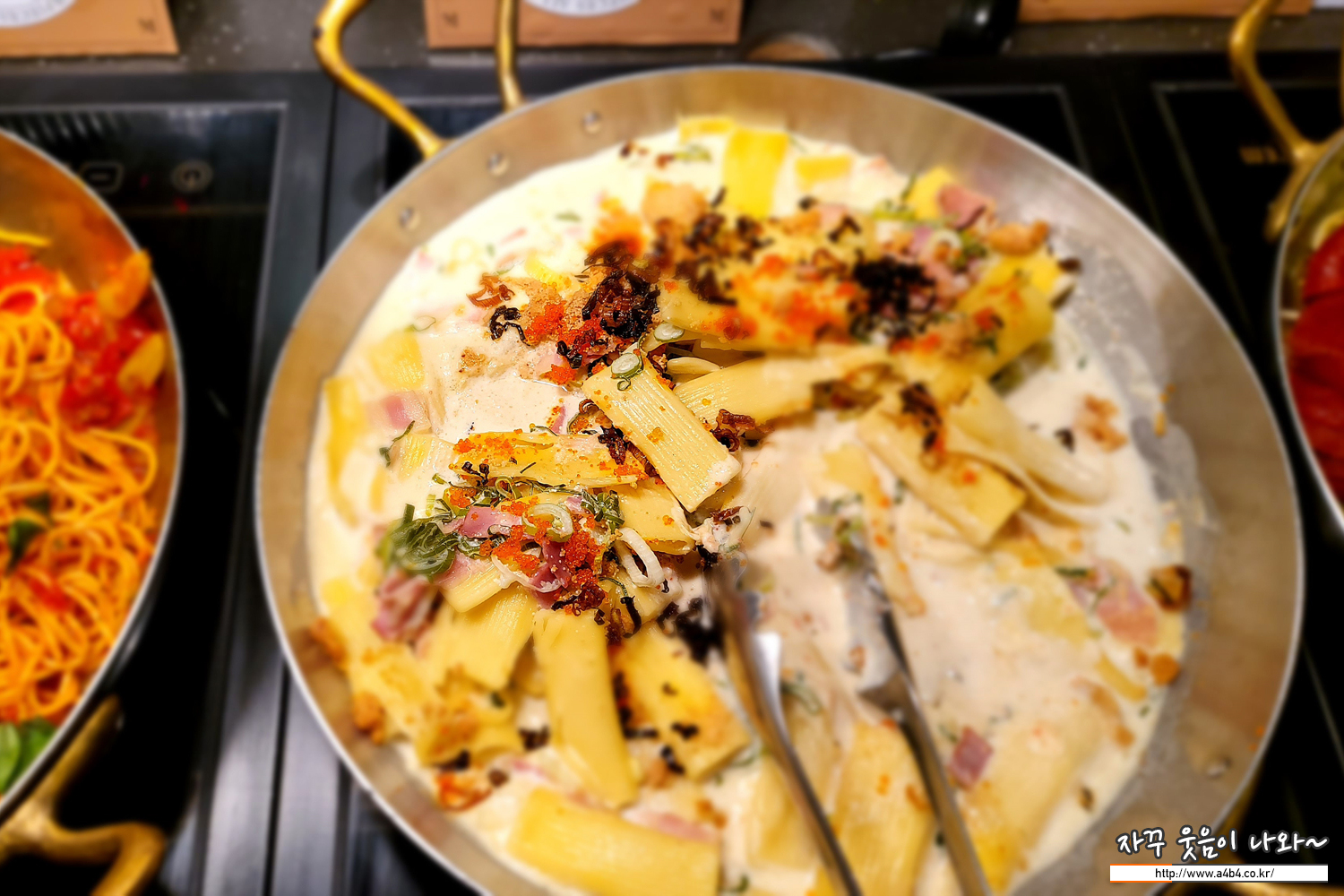 로제 치즈 그라탕과 가장 보편적인 토마토 마래파스타, 까르보나라, 베이컨 오일 파스타가 준비되어 있습니다.
