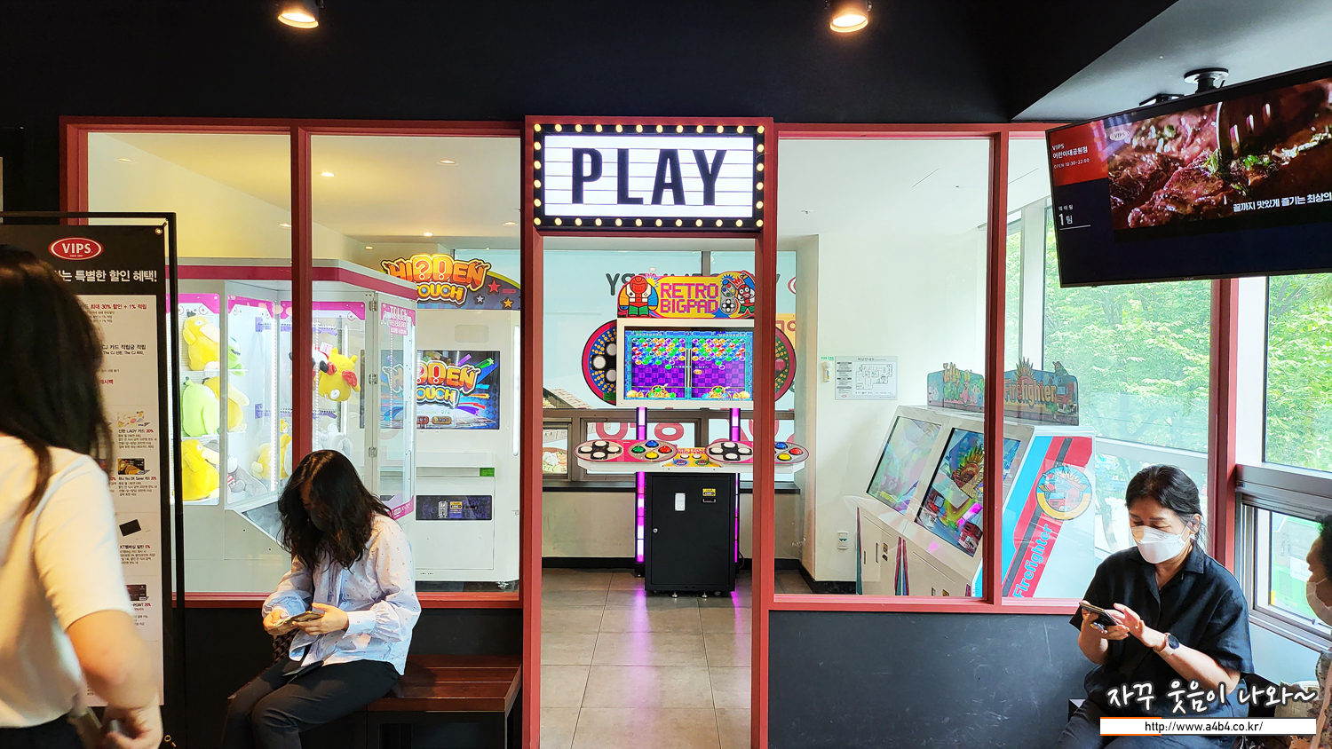 오픈전 방문자나, 대기중인 방문객을 위해서 입구에 작은 게임룸이 있습니다. (거의 불가능한 타입의) 인형뽑기 기계와 몇몇 2인용 오락기가 있습니다. 무료는 아니고 게임당 1천원... 그리고 매장 내에는 아이들을 위한 놀이방도 준비되어 있습니다.