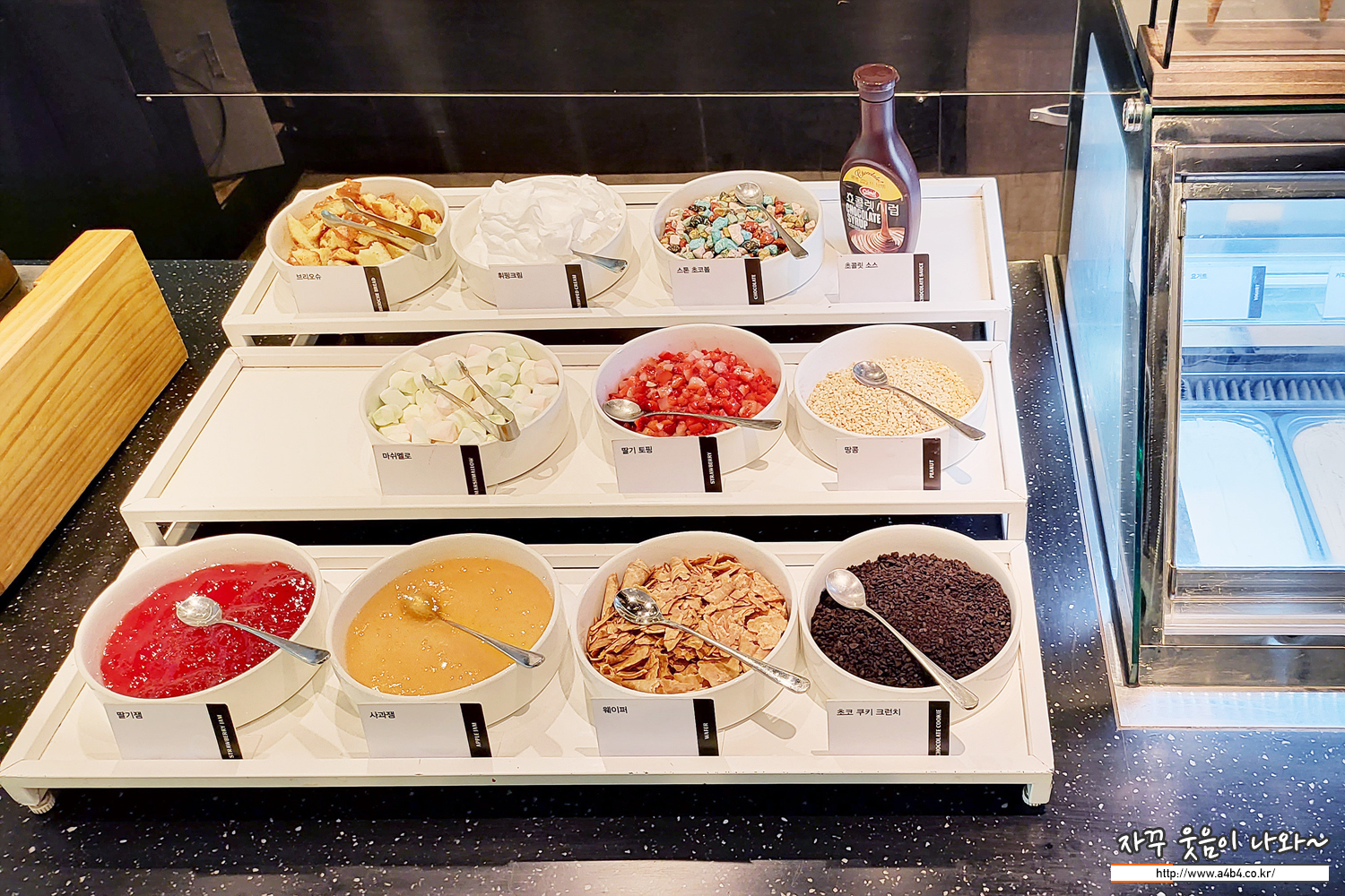 와플과 아이스크림, 그리고 토핑, 닥 1/4만 맛보기로 먹으면 충분....