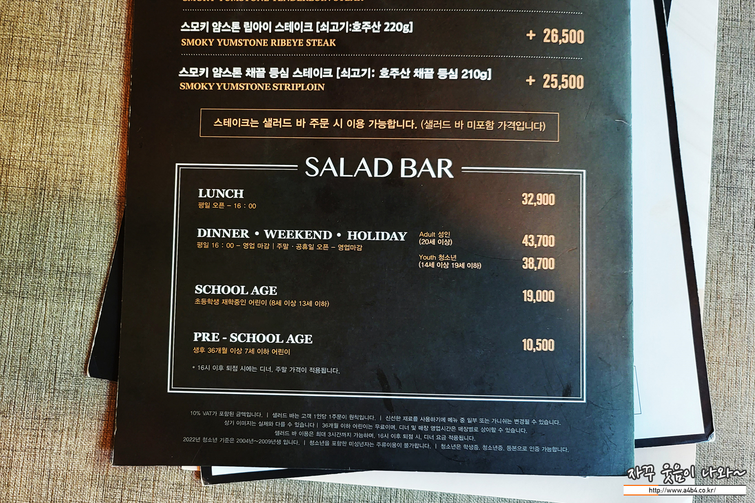 이외에도 스테이크 등을 추가로 주문할 수 있지만, 개인적으로는 샐러드바 만으로도 충분해 보이네요.