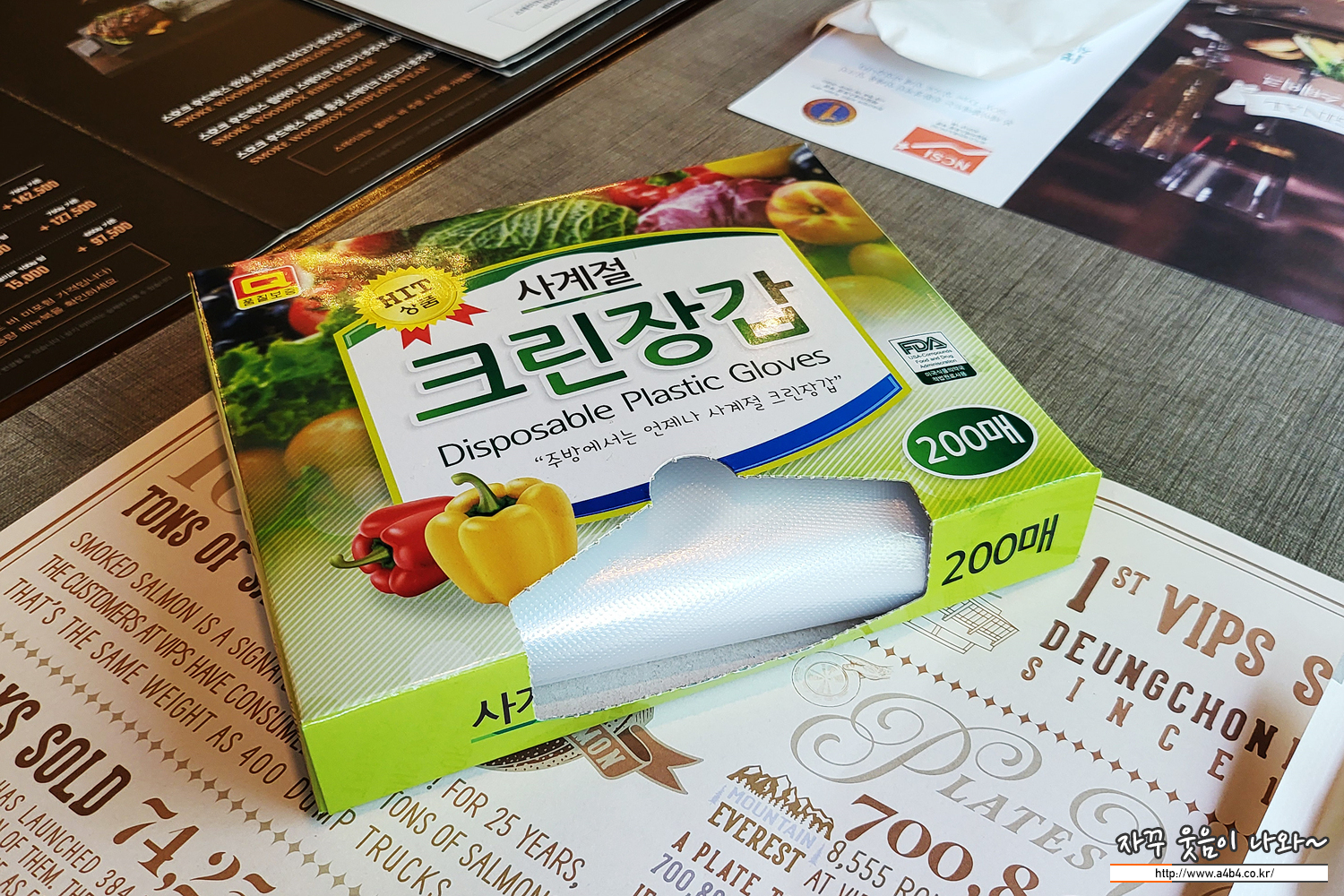 코로나19 감염예방을 위해서 각 테이블마다 이런 위생장갑을 상자로 배치 했네요. 테이블을 벗어나 샐러드바를 이용할때는 이 장갑을 착용하고 이용해야 합니다. 그러다 보니 이 위생장갑 사용량도 만만치 않네요.