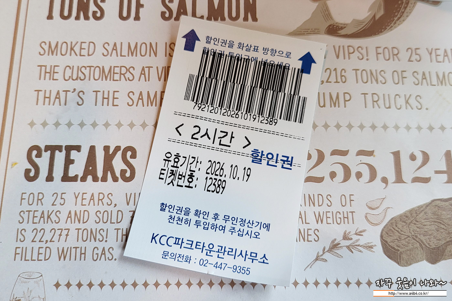 제가 방문한 빕스 어린이대공원 무료주차는 2시간 지원 됩니다. 이후 30분당 1,000원이 추가됩니다. 할인 쿠폰을 받아 출차시 무인 기기기에 넣어야 합니다.