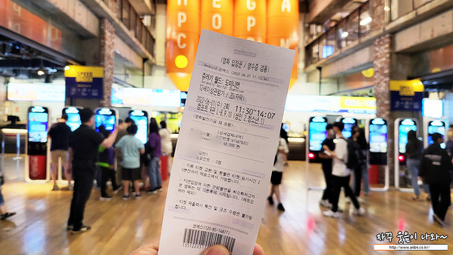 10여년만에 삼성동 코엑스에 위치한 메가박스에 가족과 영화보러 방문 했습니다. '쥬라기 월드 도미니언'