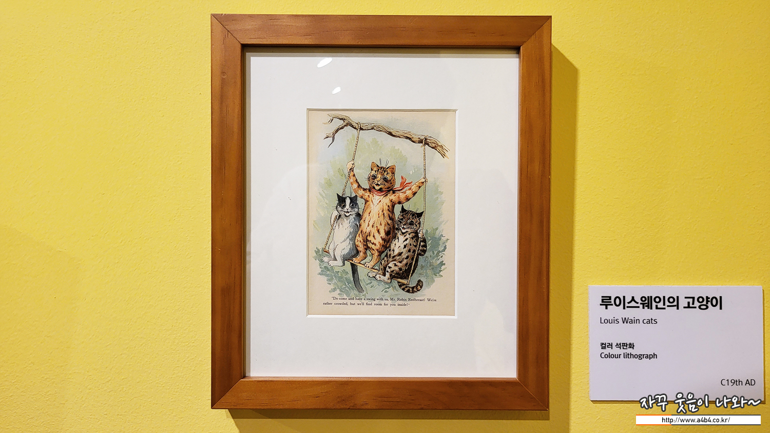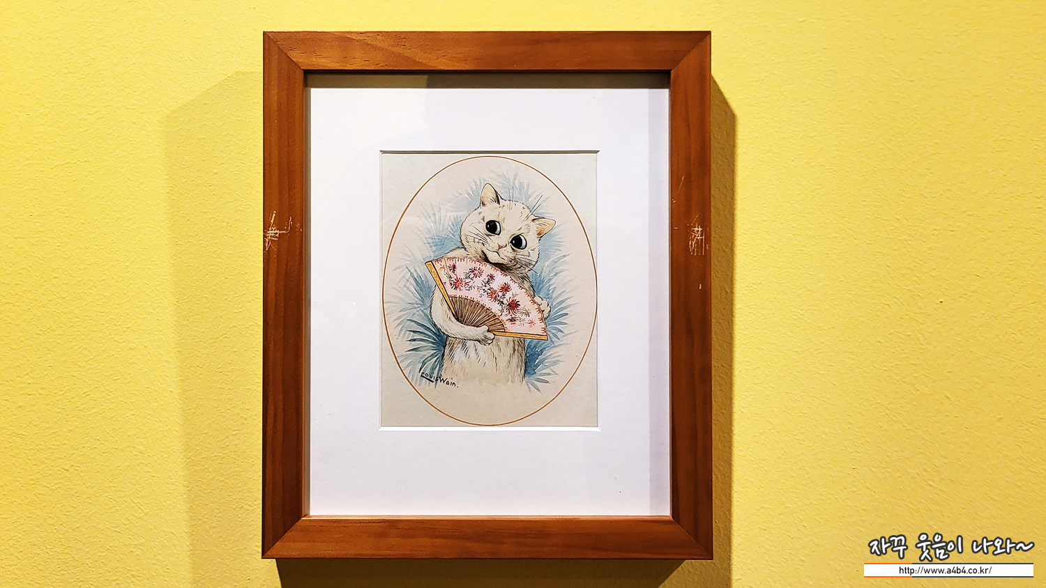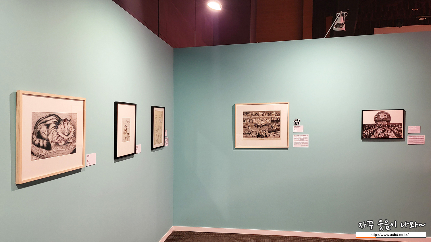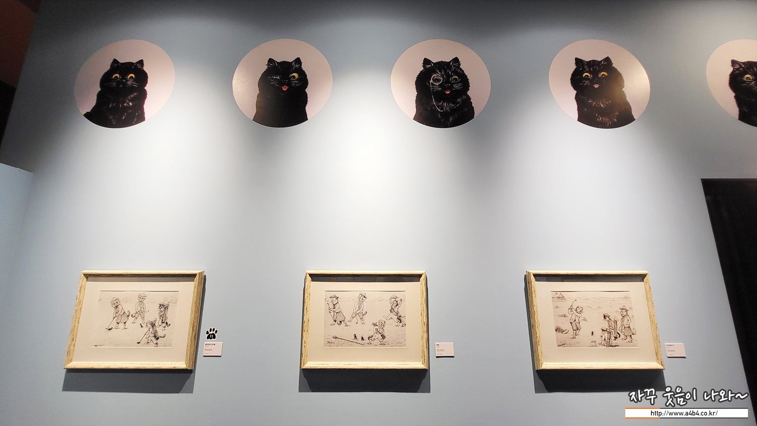 전시장 중간에 위치한 포토존, 루이스 웨인의 귀여운 세 마리 고양이 그림과 함께 사진 촬영이 가능합니다.